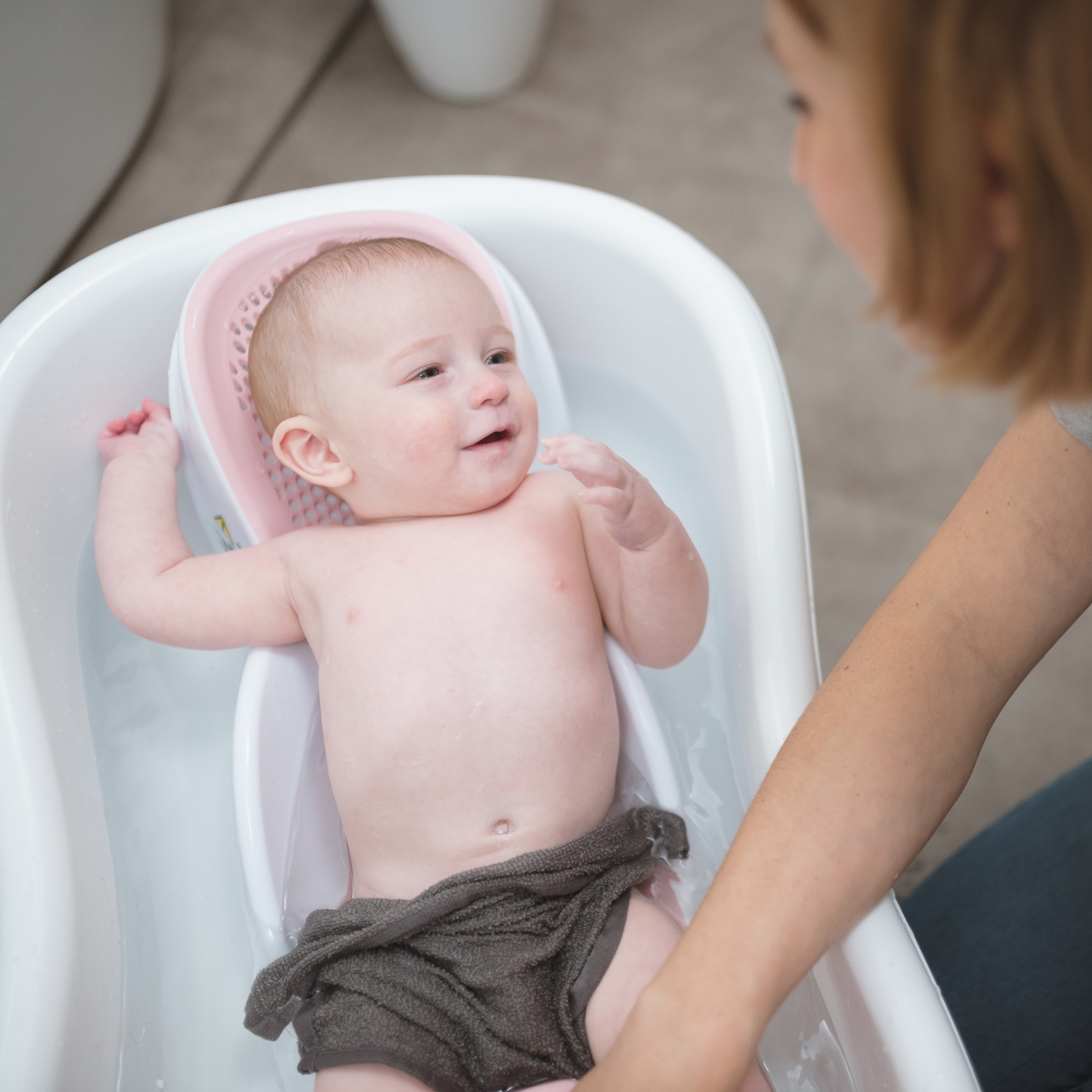 Ob in der kleinen Babynische oder in der grossen Familienwanne: die Fit Badehilfe passt sich unterschiedlichen Badewannen an und erleichtert dir den Alltag beim Baden erheblich.
