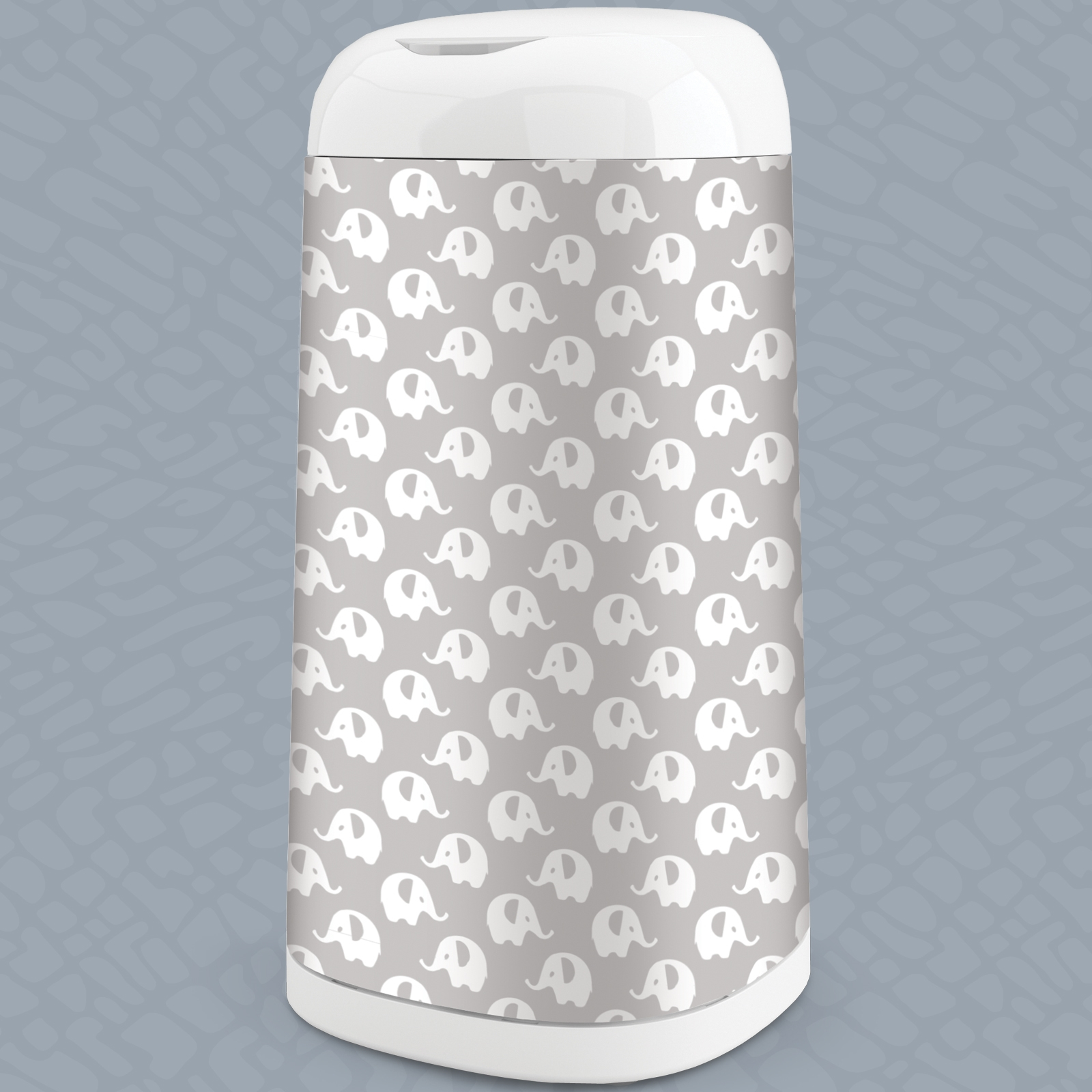 Der ANGELCARE Bezug Dress-Up in Elefantengrau verleiht deinem Windeleimer ein freundliches, kindgerechtes Aussehen, das sich unaufdringlich in jede Einrichtung einfügt. Das dezente Elefantemotiv schafft eine warme Atmosphäre, ohne den Raum zu überladen.