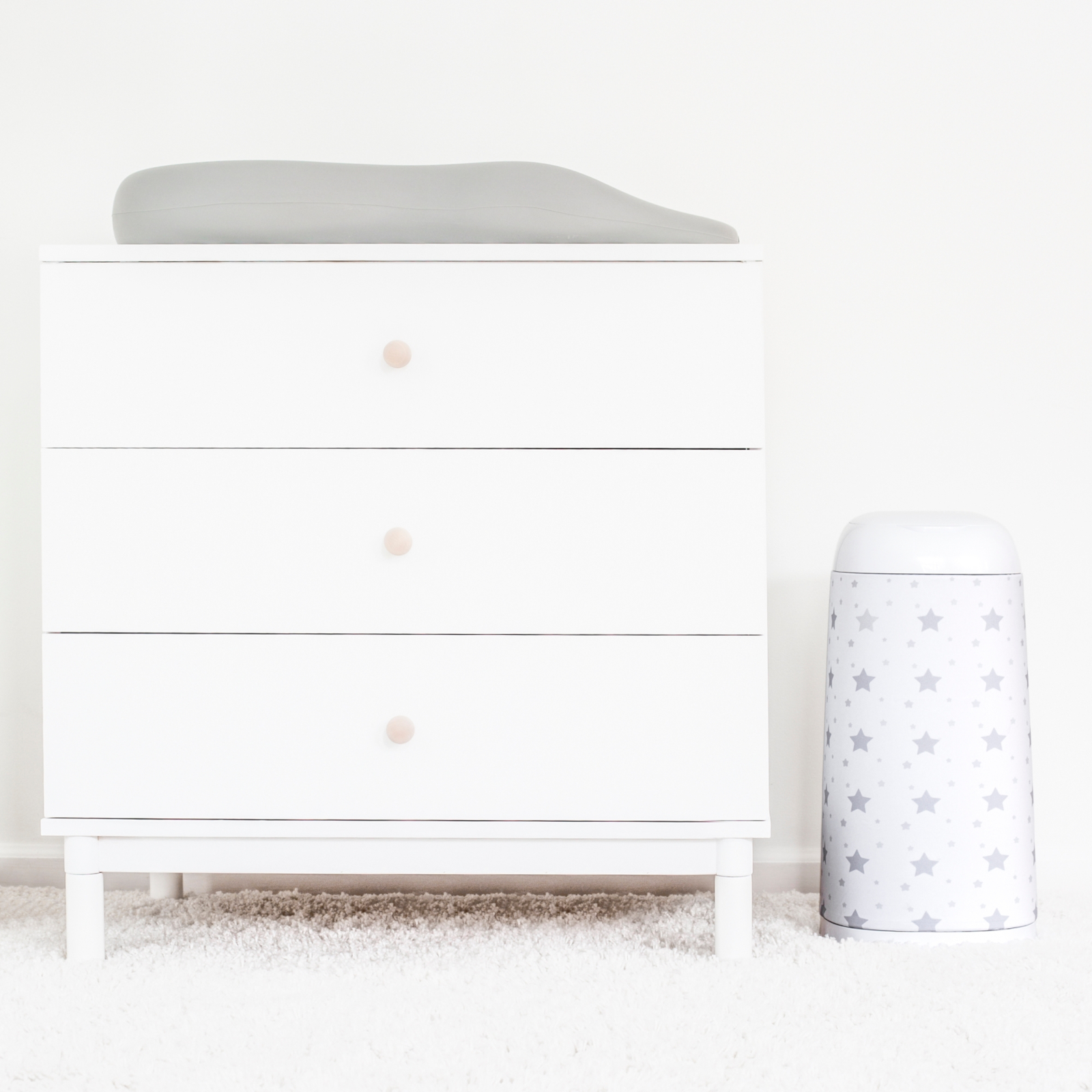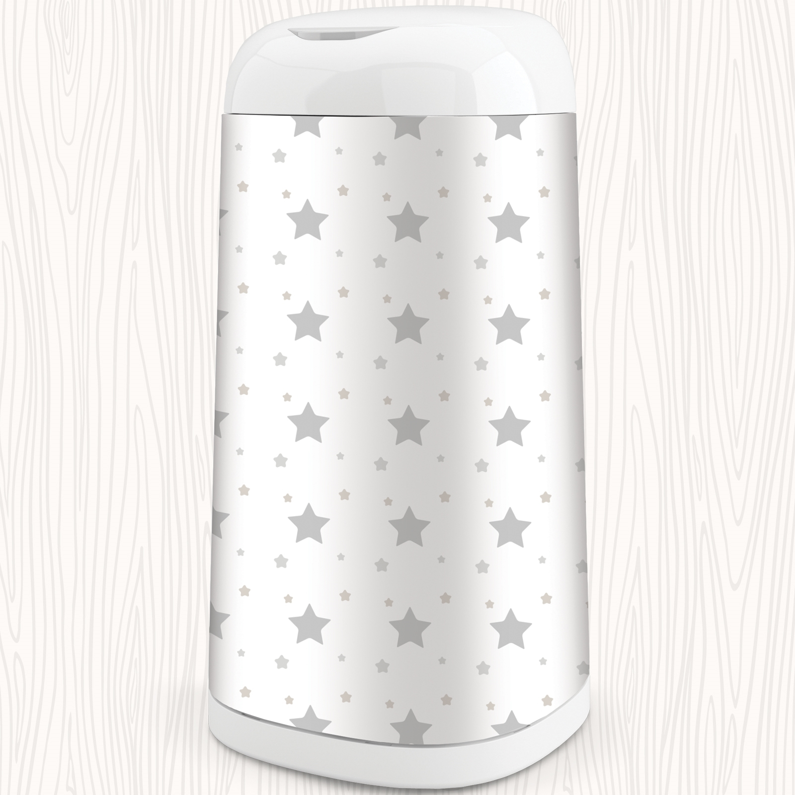 Der Bezug Dress-Up mit dezentem Sternenmuster in Grau verwandelt den Windeleimer in ein hübsches Detail im Kinderzimmer. Durch das ruhige Farbschema fügt sich der Bezug harmonisch in verschiedene Einrichtungsstile ein, von modern bis skandinavisch.