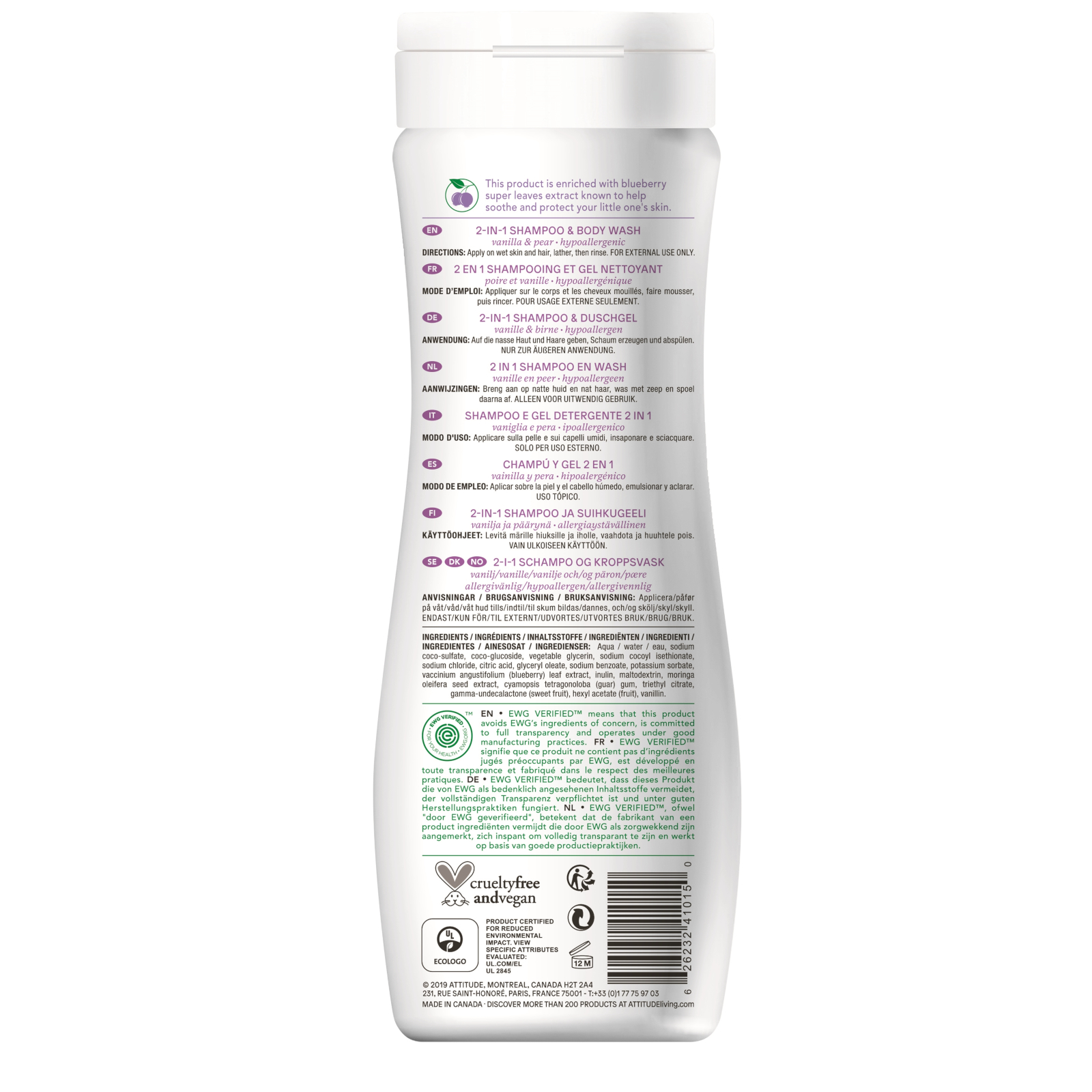 ATTITUDE 2in1 Shampoo und Duschgel Vanille-Birne LittleLeaves, 473 ml