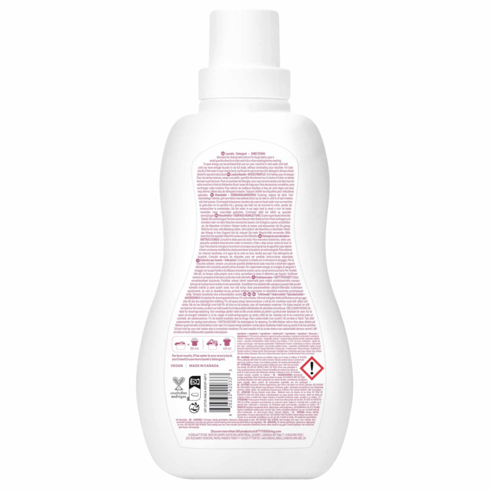 ATTITUDE Little Ones Flüssigwaschmittel parfümfrei 1,05 L – Sanfte Reinigung für empfindliche Haut