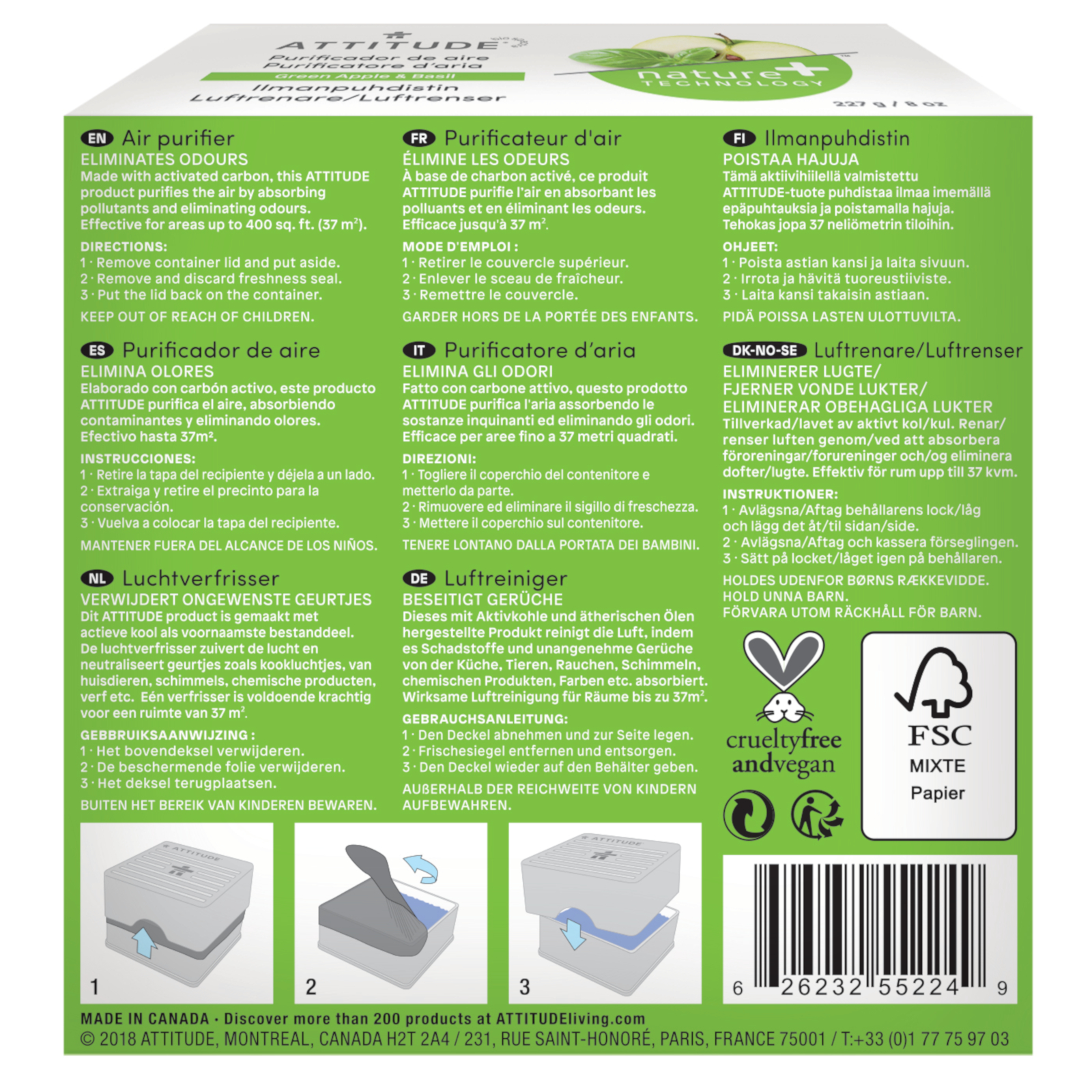 ATTITUDE Natürlicher Luftreiniger Apfel und Basilikum, 227g – Frische ohne Chemie