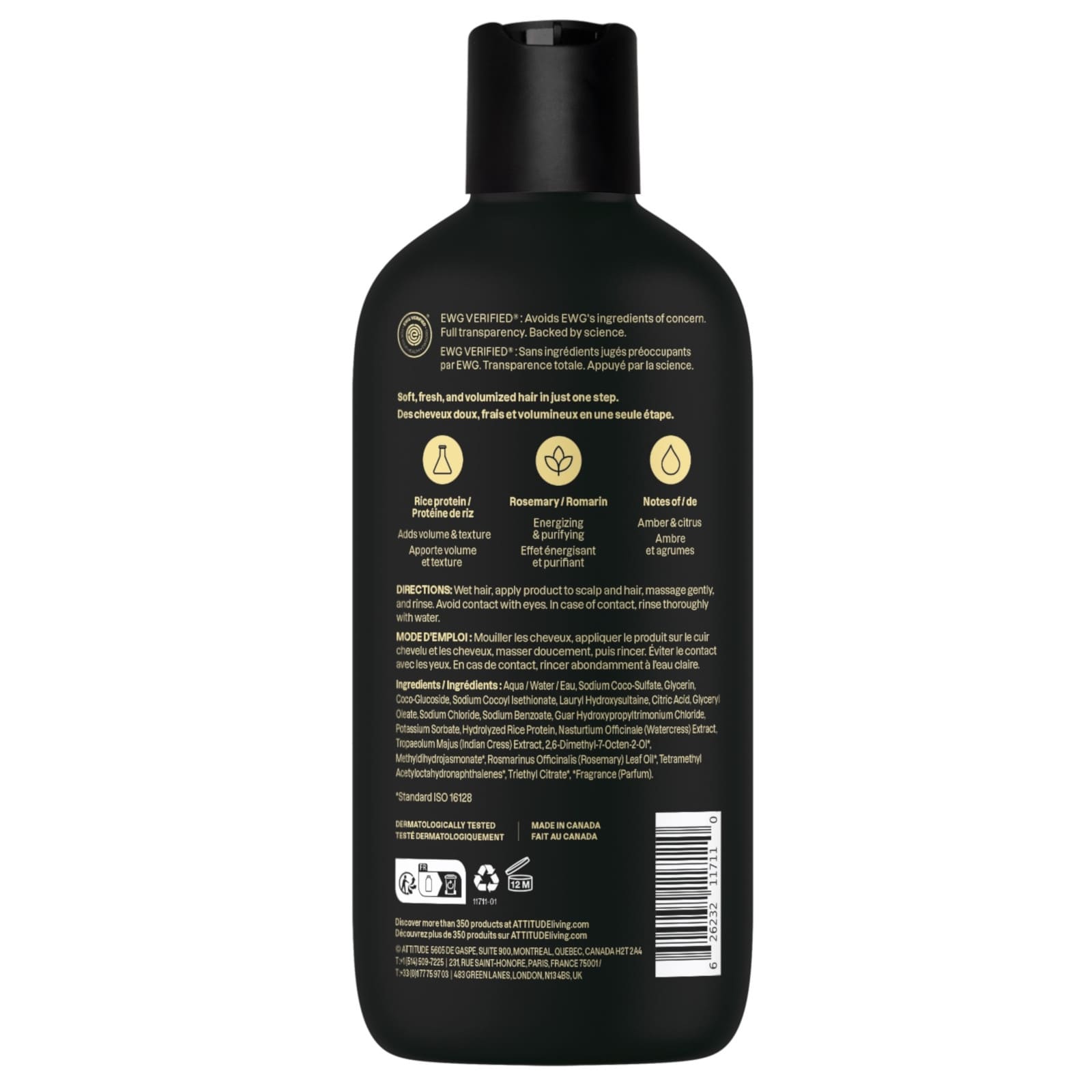 Halte deine Pflegeroutine einfach und dennoch effektiv mit diesem veganen 2in1 Produkt, Volumen-Shampoo & Conditioner, das sowohl Leistung als auch Komfort bietet. EWG Verified® und mit 97 % Inhaltsstoffen aus natürlichen Quellen formuliert, reinigt und pflegt es dein Haar in einem einfachen Schritt. Es enthält Reisprotein, das deinem Haar Volumen und Textur verleiht, sowie Rosmarin mit antioxidativen Eigenschaften, der die Kopfhaut belebt, und Extrakte aus Brunnenkresse und Indischer Kresse, die dein Haar revitalisieren. Erlebe einen eleganten Duft aus spritzigen Zitrusfrüchten, gemischt mit der reichen Tiefe von Amber. Keine Kompromisse, nur sauberes, weiches und voluminöses Haar in einer einzigen Flasche. Inhaltsstoffe: Wasser, Natriumcocosulfat, Glycerin, Kokosglucosid, Natriumcocoylisethionat, Laurylhydroxysultain, Zitronensäure, Glyceryloleat, Natriumchlorid, Natriumbenzoat, Guarhydroxypropyltrimoniumchlorid, Kaliumsorbat, hydrolysiertes Reisprotein, Nasturtium Officinale (Brunnenkresse)-Extrakt, Tropaeolum Majus (Kapuzinerkresse)-Extrakt, 2,6-Dimethyl-7-Octen-2-Ol, Methyldihydrojasmonat, Rosmarinus Officinalis (Rosmarin)-Blattöl, Tetramethyl Acetyloctahydronaphthalenes, Triethyl Citrate