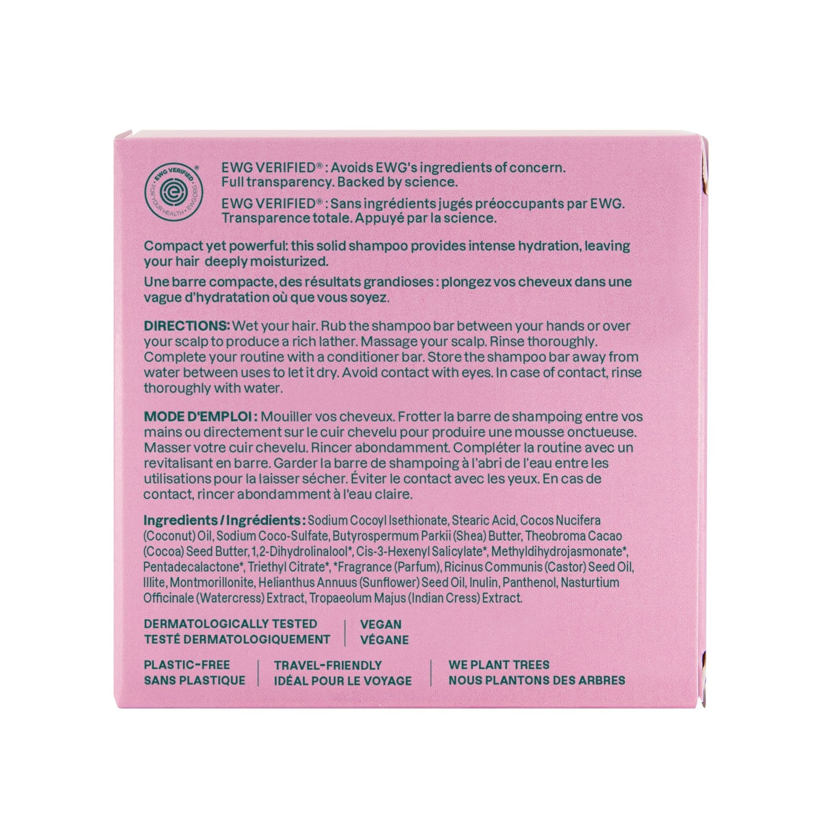 Das vegane und kunststofffreie Moisture Rich Shampoo Bar von ATTITUDE besteht zu 91 % aus Inhaltsstoffen natürlichen Ursprungs und ist ideal für trockenes Haar. Seine Formel enthält rosa Tonerde, die das Haar sanft reinigt und überschüssigen Talg absorbiert, sowie Rizinusöl, das die Feuchtigkeit des Haares bewahrt und es in gutem Zustand hält. Dieses Shampoo ist EWG Verified® und dermatologisch getestet und hinterlässt dank seines cremigen Schaums mit fruchtigem Kokosnuss- und Waldbeeraroma ein frisches Gefühl auf deinem Haar. Es ist in fester Form erhältlich und eignet sich perfekt für unterwegs oder für deine tägliche Haarpflege. Gönne deinem Haar die Pflege, die es verdient, und kombiniere es mit dem Moisture Rich Conditioner Bar, ohne Kompromisse bei der Leistung oder beim Umweltschutz. Inhaltsstoffe: Natriumcocoylisethionat, Stearinsäure, Cocos Nucifera (Kokosnuss) Öl, Natriumcoco-Sulfat, Butyrospermum Parkii (Shea) Butter, Theobroma Cacao (Kakao) Samenbutter, 1,2-Dihydrolinalool, Cis-3-Hexenylsalicylat, Methyldihydrojasmonat, Pentadecalacton, Triethylcitrat, Ricinus Communis (Rizinus) Samenöl, Illit, Montmorillonit, Helianthus Annuus (Sonnenblume) Samenöl, Inulin, Panthenol, Nasturtium Officinale (Brunnenkresse) Extrakt, Tropaeolum Majus (Indische Kresse) Extrakt