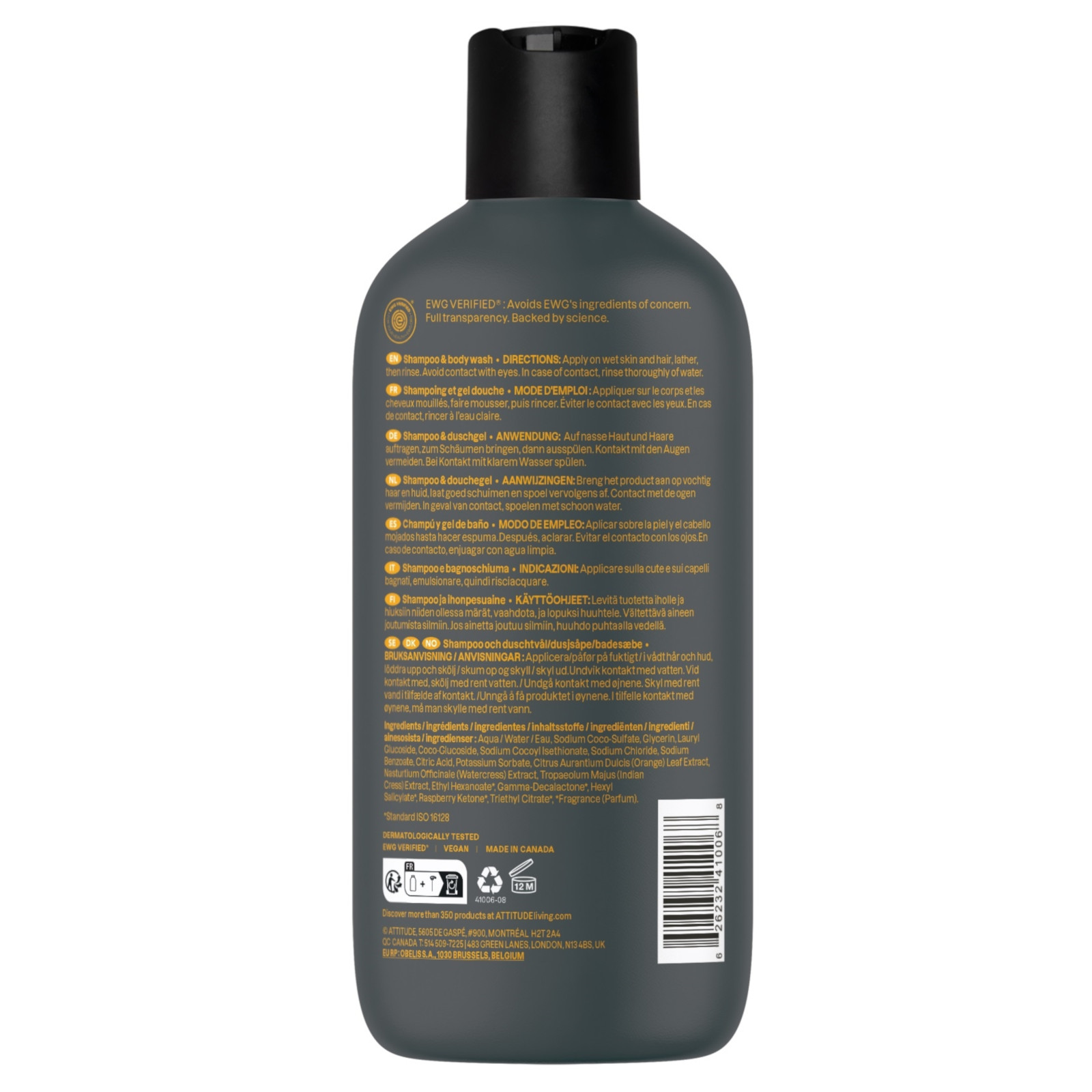 ATTITUDE Superleaves Sports Men Shampoo & Duschgel, 473 ml – 2in1 Pflege für aktive Männer