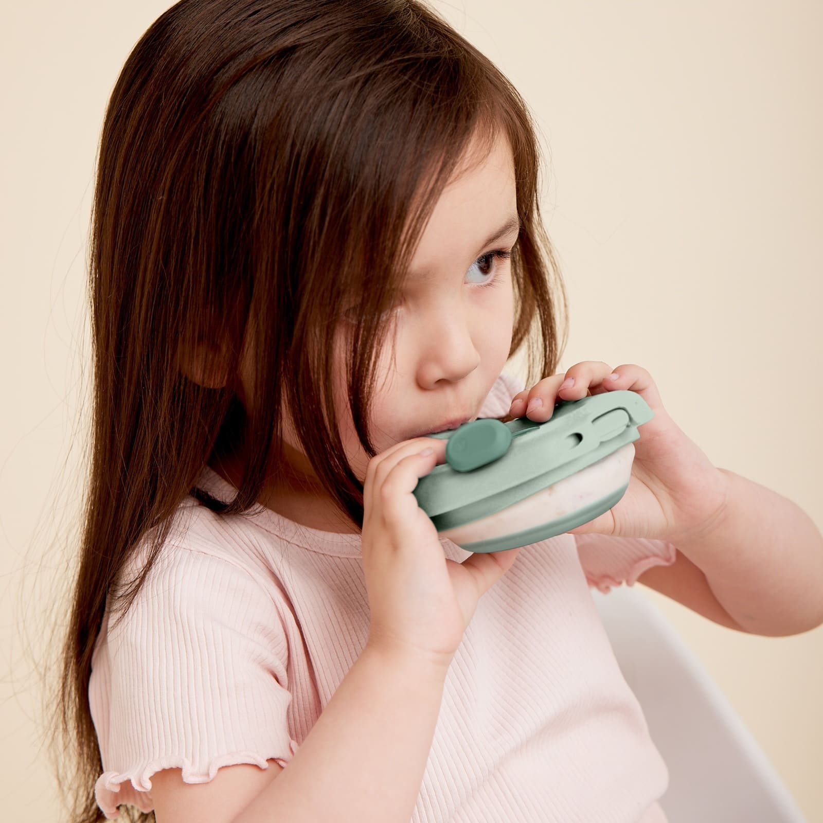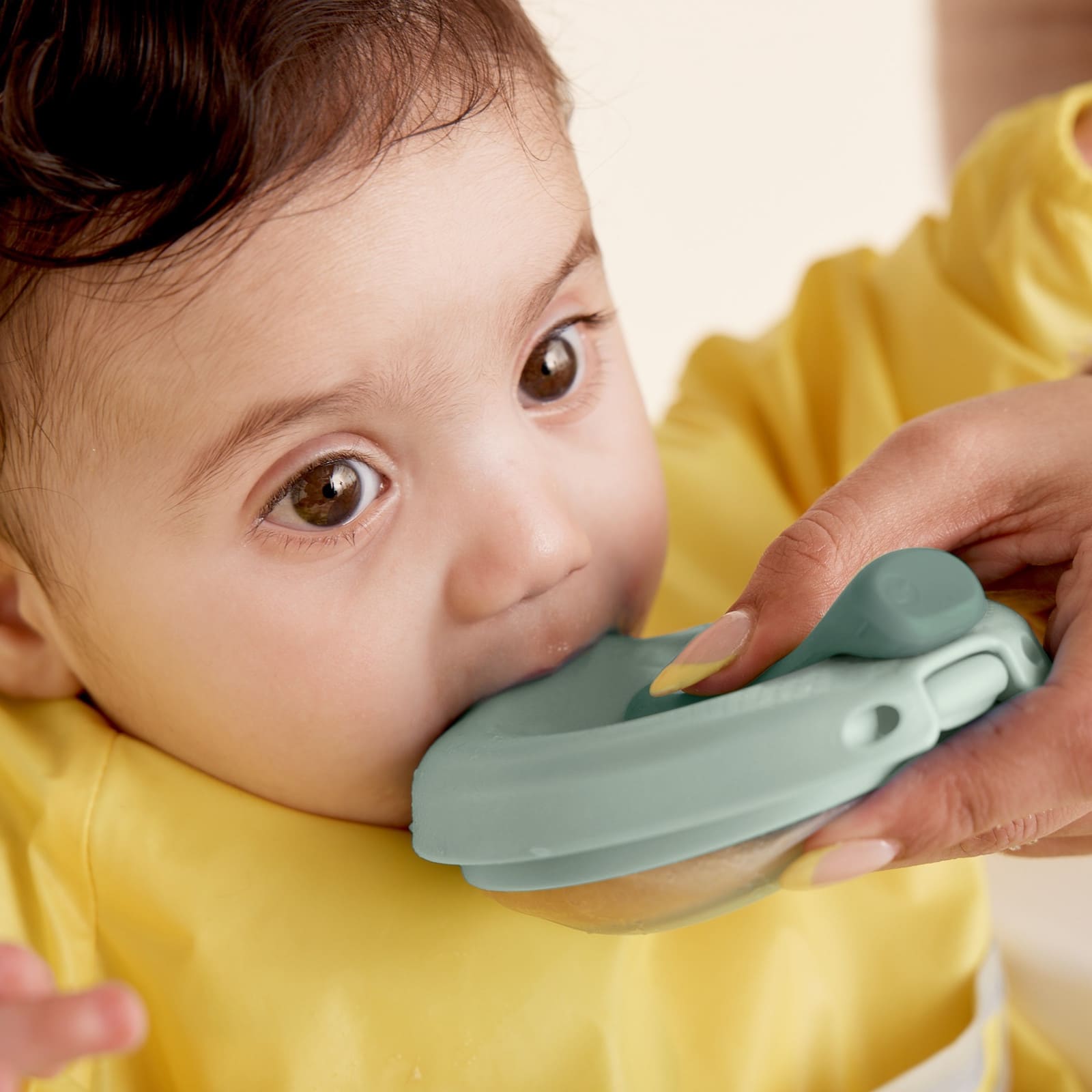 Der B.BOX Essensbeutel Fill & Feed in Sage ist ein wiederverwendbarer Beutel aus weichem, lebensmittelechtem Silikon mit 110 ml Fassungsvermögen. Er eignet sich ideal für Pürees, Joghurt, Pudding oder selbstgemachte Snacks und ermöglicht dir, frische Babynahrung einfach vorzubereiten und mitzunehmen.