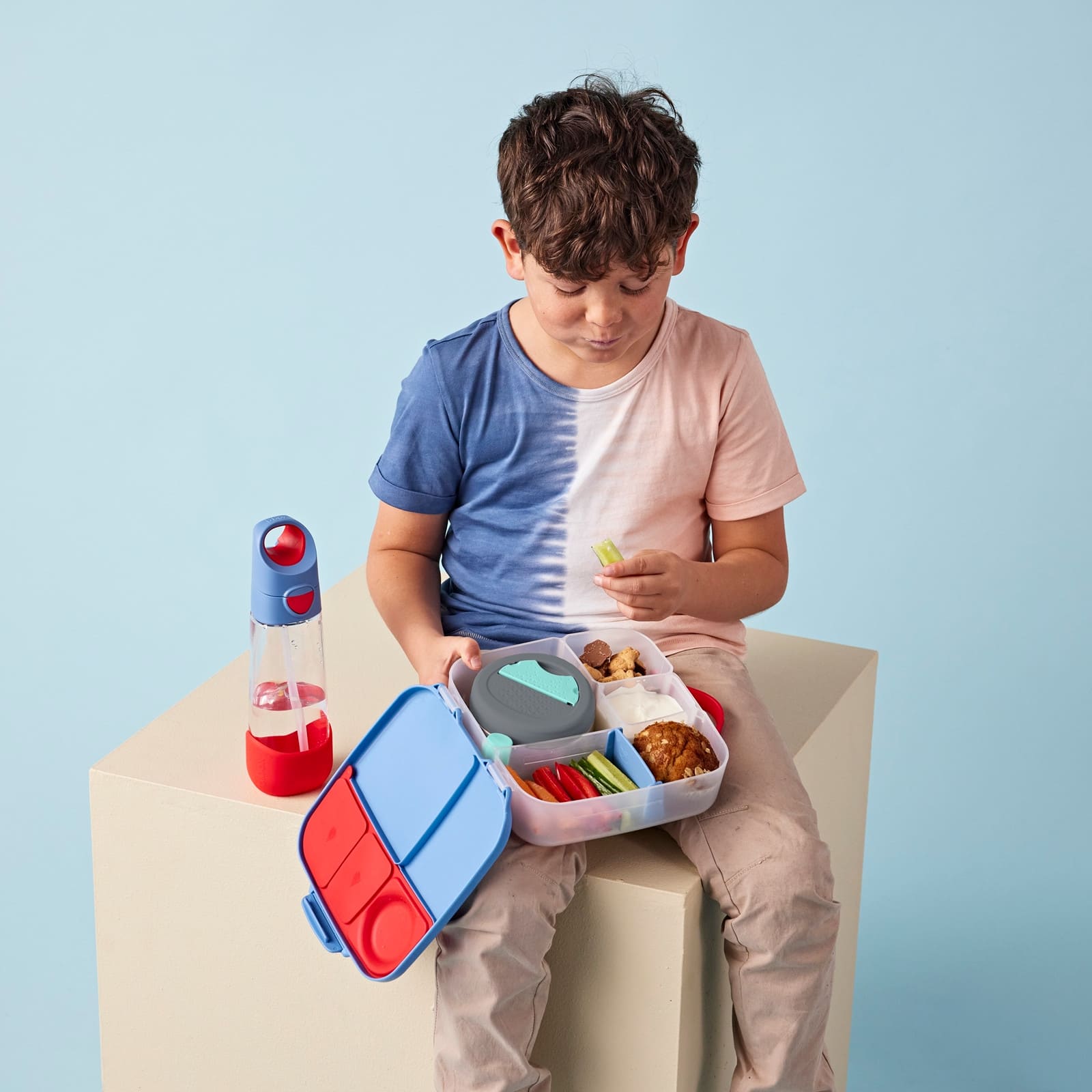 Die B.BOX Lunchbox 2L Blue Blaze wurde für den Alltag aktiver Kinder konzipiert. Das geräumige Hauptfach bietet Platz für Sandwiches, Vollkornbrötli oder mehrere Snacks, ohne dass alles zusammengedrückt wird. So bleiben Mahlzeiten ansprechend und sättigend.