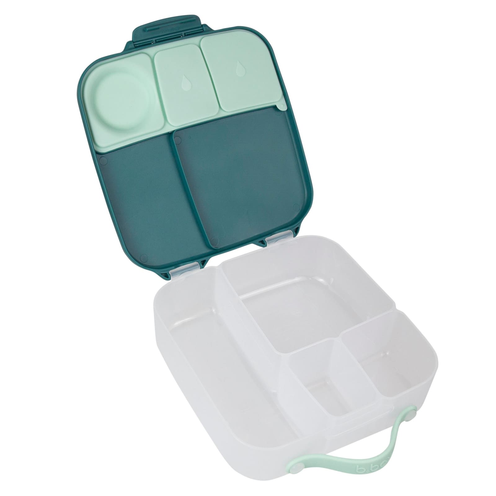 Die B.BOX Lunchbox 2L Emerald Forest wurde speziell für aktive Kinder entwickelt. Das grosse Hauptfach bietet Platz für ein ganzes Sandwich oder Brötchen, sodass Obst und Snacks nicht zerkleinert werden müssen und unversehrt bleiben.