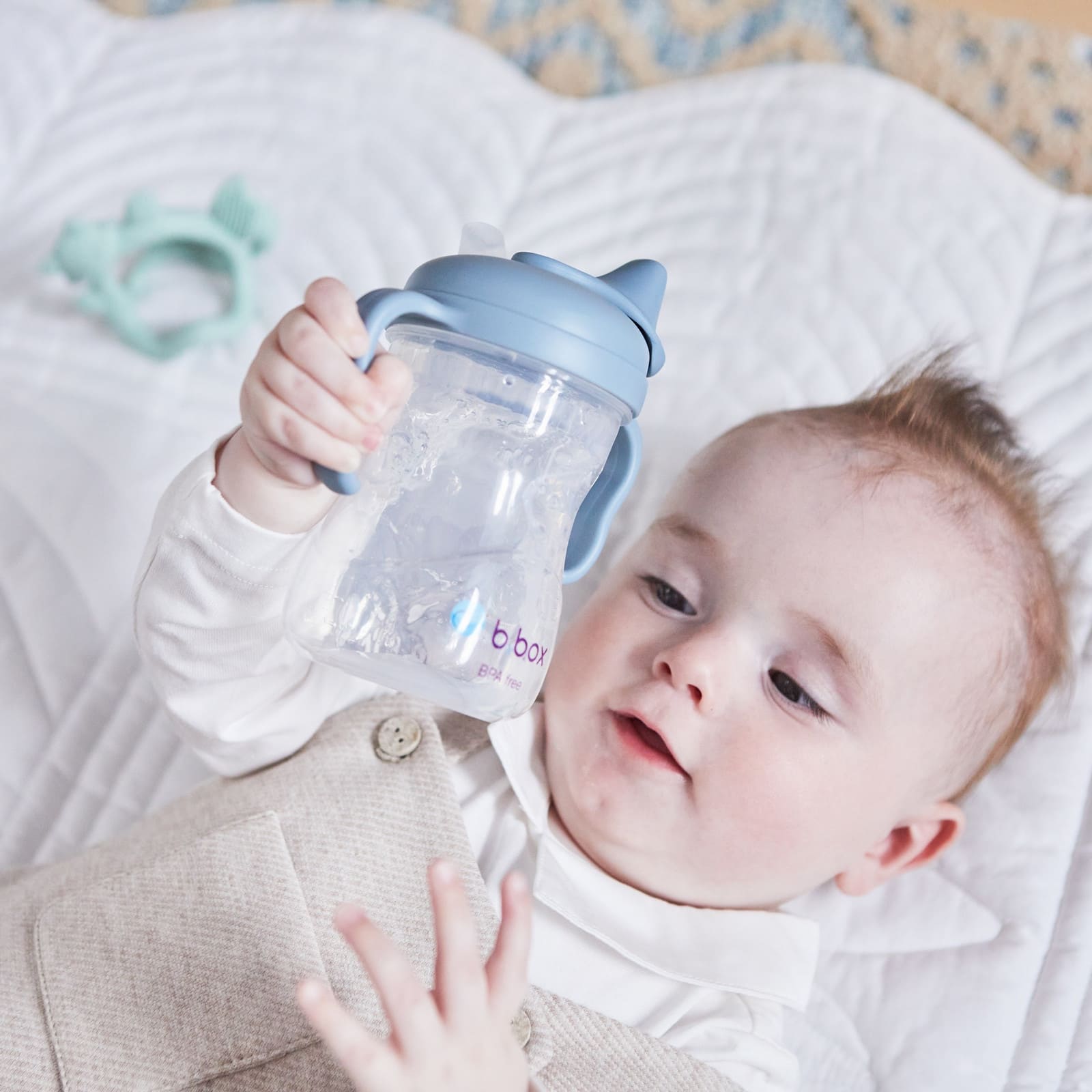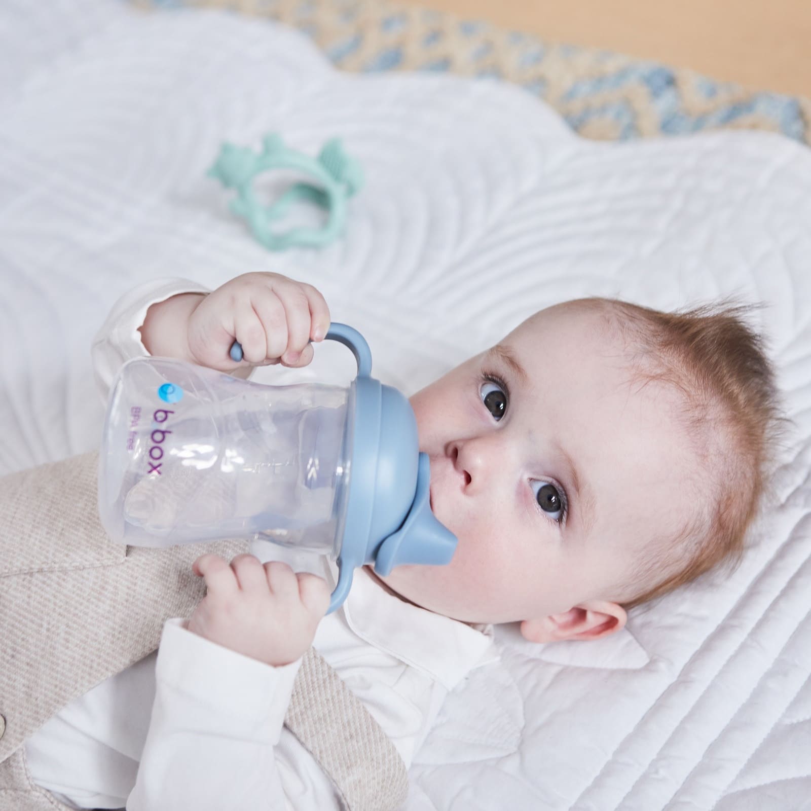 Die B.BOX Schnabeltasse 240ml in der Ocean-Optik ist speziell auf die Bedürfnisse von Babys und Kleinkindern abgestimmt. Der weiche Schnabel sorgt für einen angenehmen Wechsel vom Fläschchen oder Stillen zur eigenständigen Trinkphase und schont dabei empfindliches Zahnfleisch.