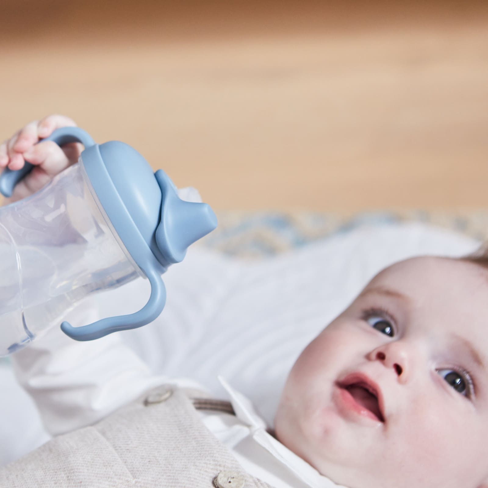 Die ergonomischen Griffe sind so gestaltet, dass auch kleine Hände die Tasse sicher halten können. Das freundliche Ozean-Design in sanften Blautönen macht den Becher zum liebgewonnenen Alltagsbegleiter und animiert zum selbstständigen Trinken.