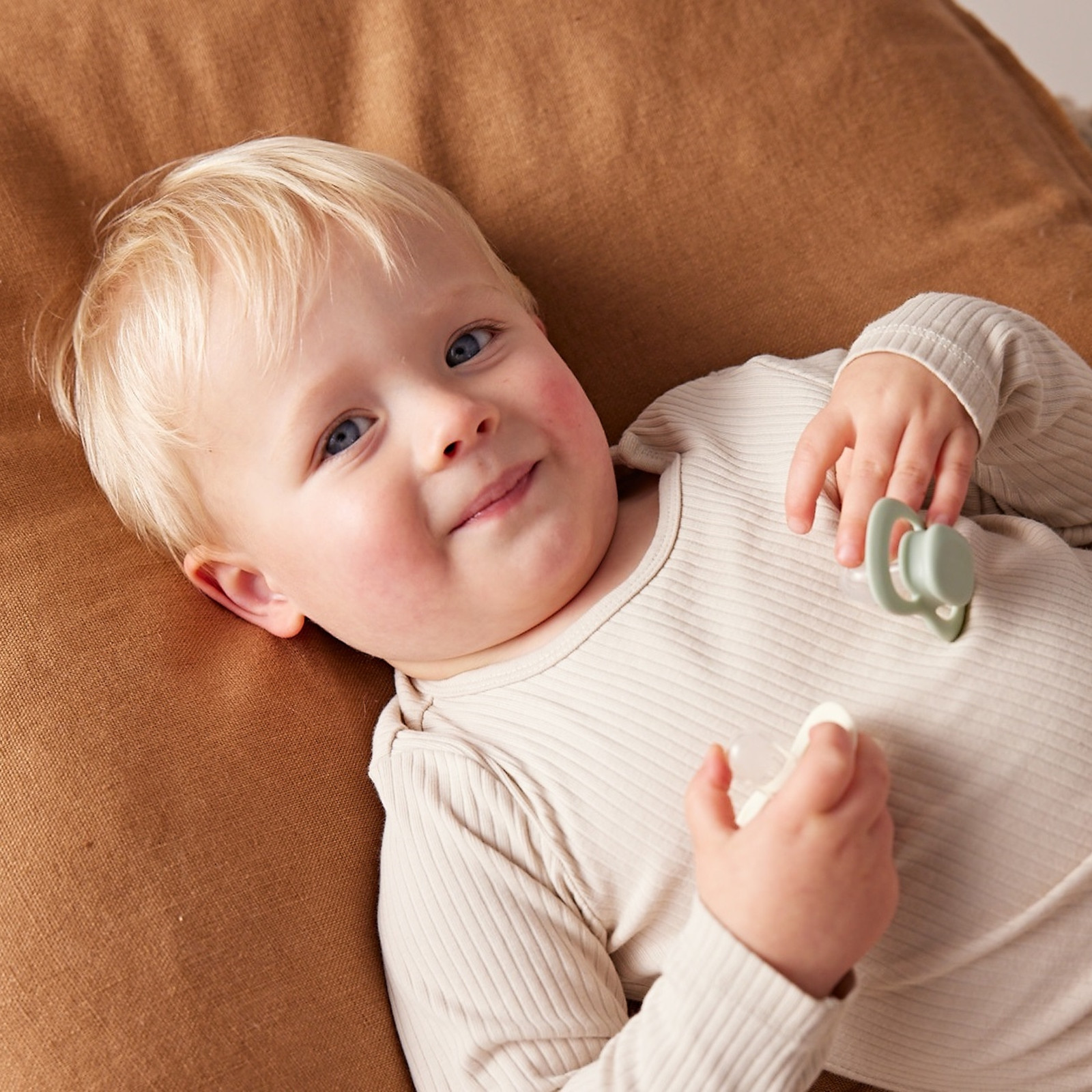 Das symmetrische Schild lässt sich um 180 Grad drehen, sodass der Schnuller immer richtig sitzt, egal wie dein Baby ihn hält. Dünne Saugerhälse sorgen für eine flexible Anpassung im Mund und reduzieren Druckstellen.
