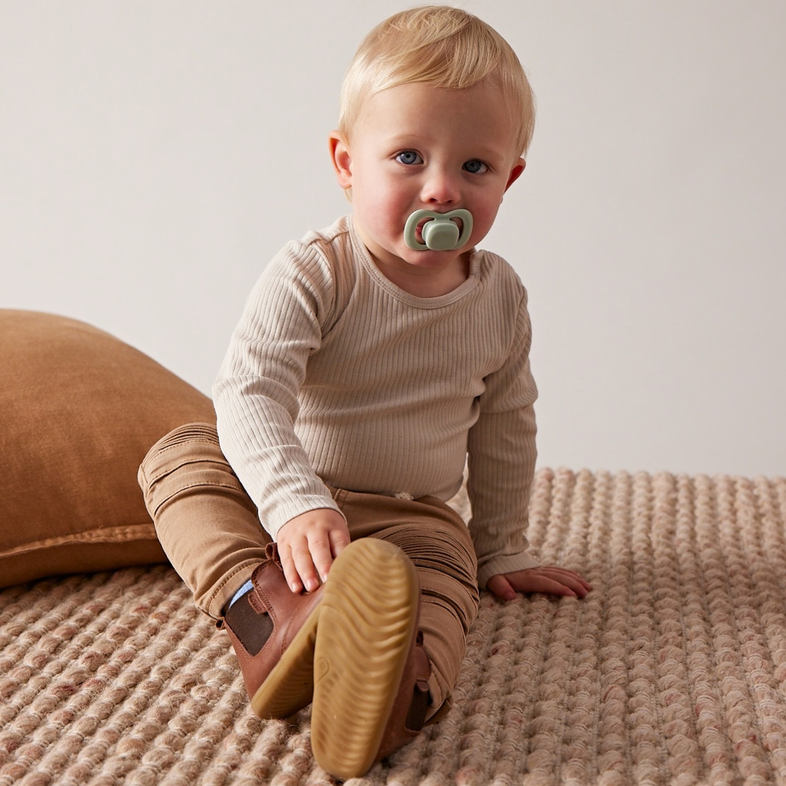 Weiches Silikon und eine anatomische Form sorgen für hohen Tragekomfort ohne unangenehme Druckstellen. Das symmetrische Design und die ergonomische Form stabilisieren den Sauger im Mund und fördern entspanntes Saugen.