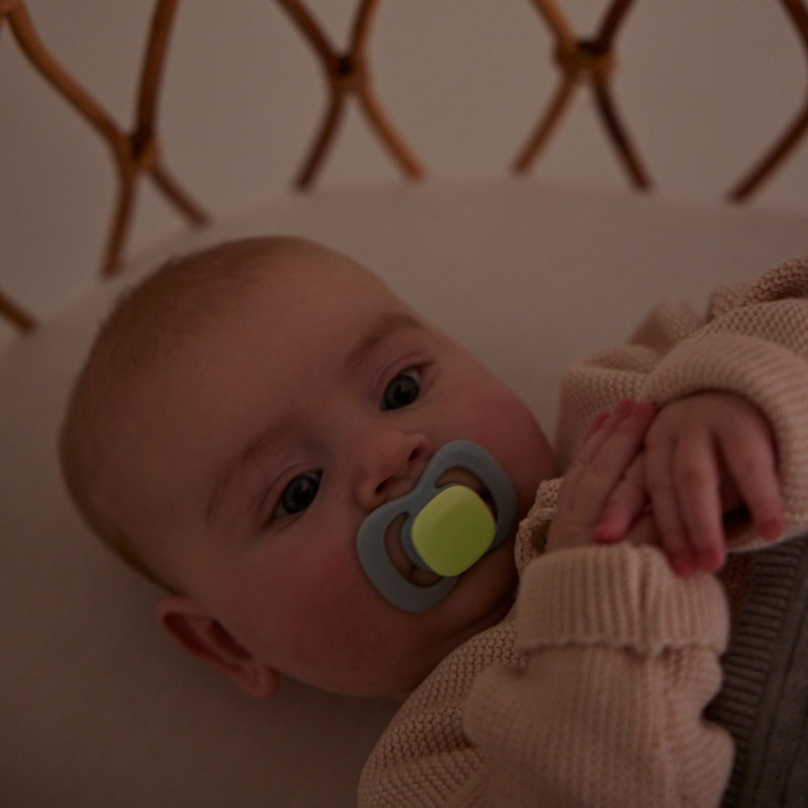 Das sanfte Nachleuchten ist dezent und verhindert blendende Helligkeit, bietet aber genug Sichtbarkeit, damit Eltern den Schnuller schnell greifen können.