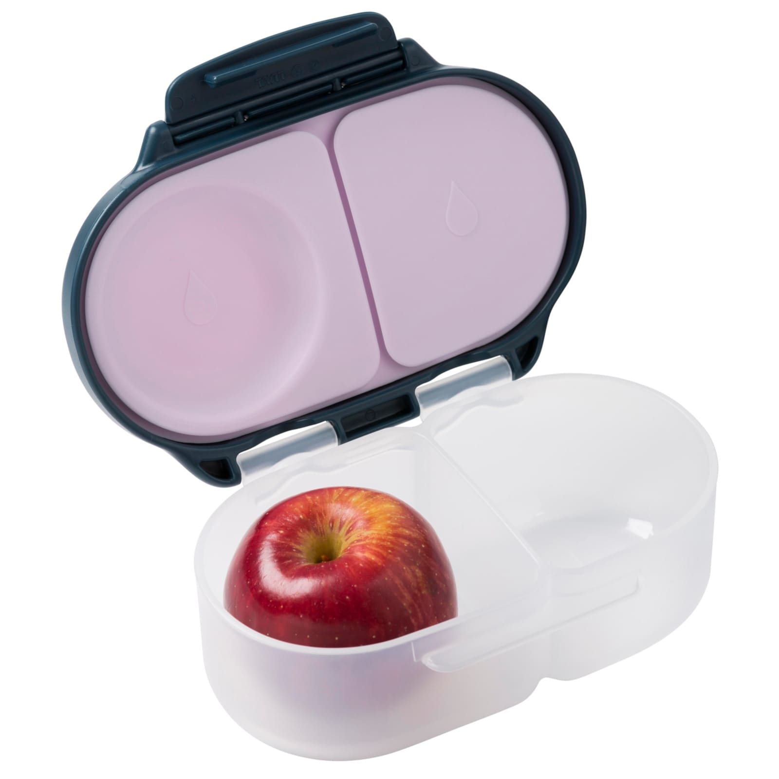 Die B.BOX Snackbox 350ml Indigo Rose ist eine platzsparende und durchdachte Lösung für die kleine Verpflegung unterwegs. Mit zwei getrennten Fächern bietet sie flexible Aufteilungsmöglichkeiten für Obst, Gemüsesticks, kleine Sandwiches oder cremige Snacks.