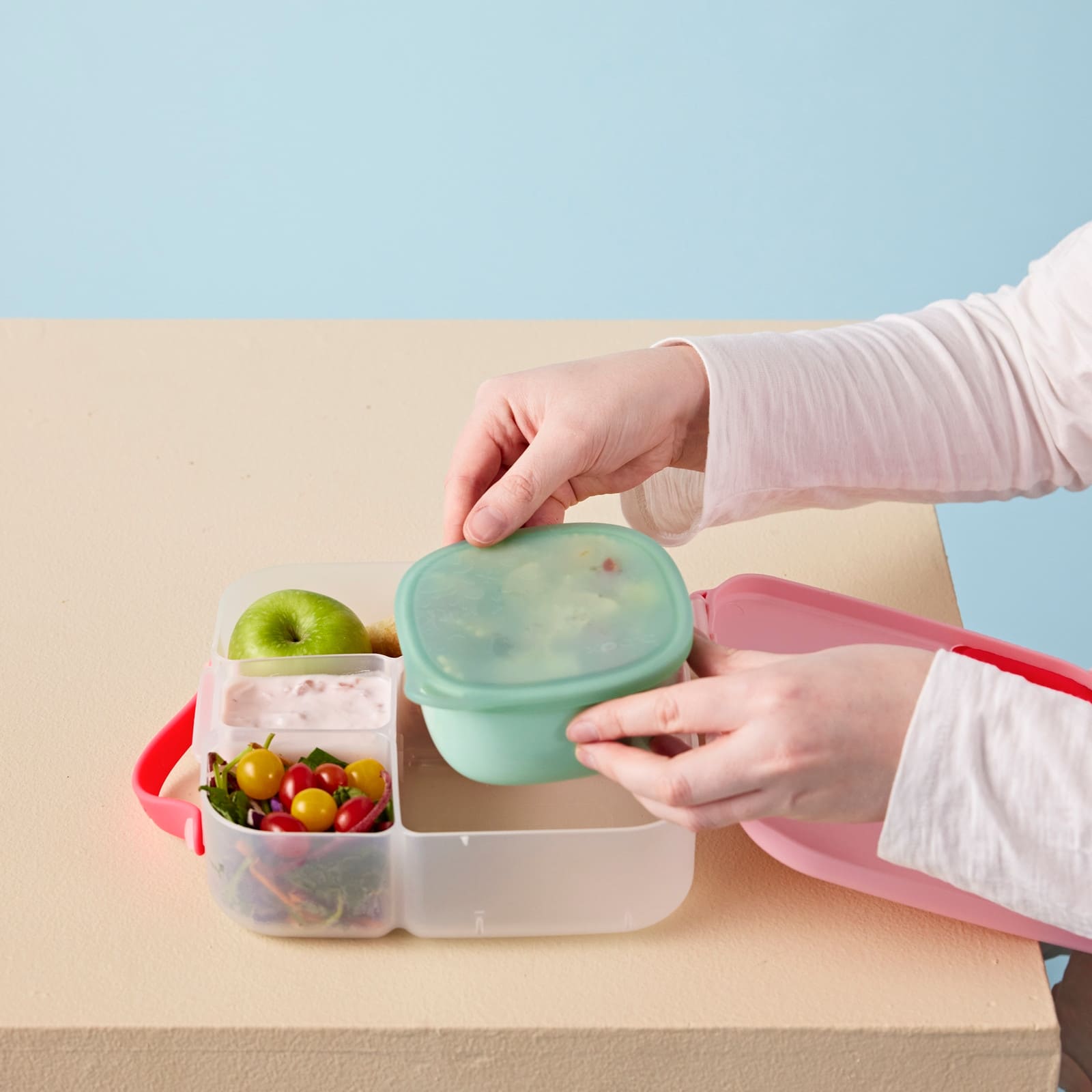 Dank der flexiblen Silikon-Ecklasche lässt sich die Box spielend leicht öffnen. Du kannst deinem Kind die Box selbstständig benutzen lassen, wodurch die Selbstständigkeit gefördert wird und der Alltag entspannter wird.