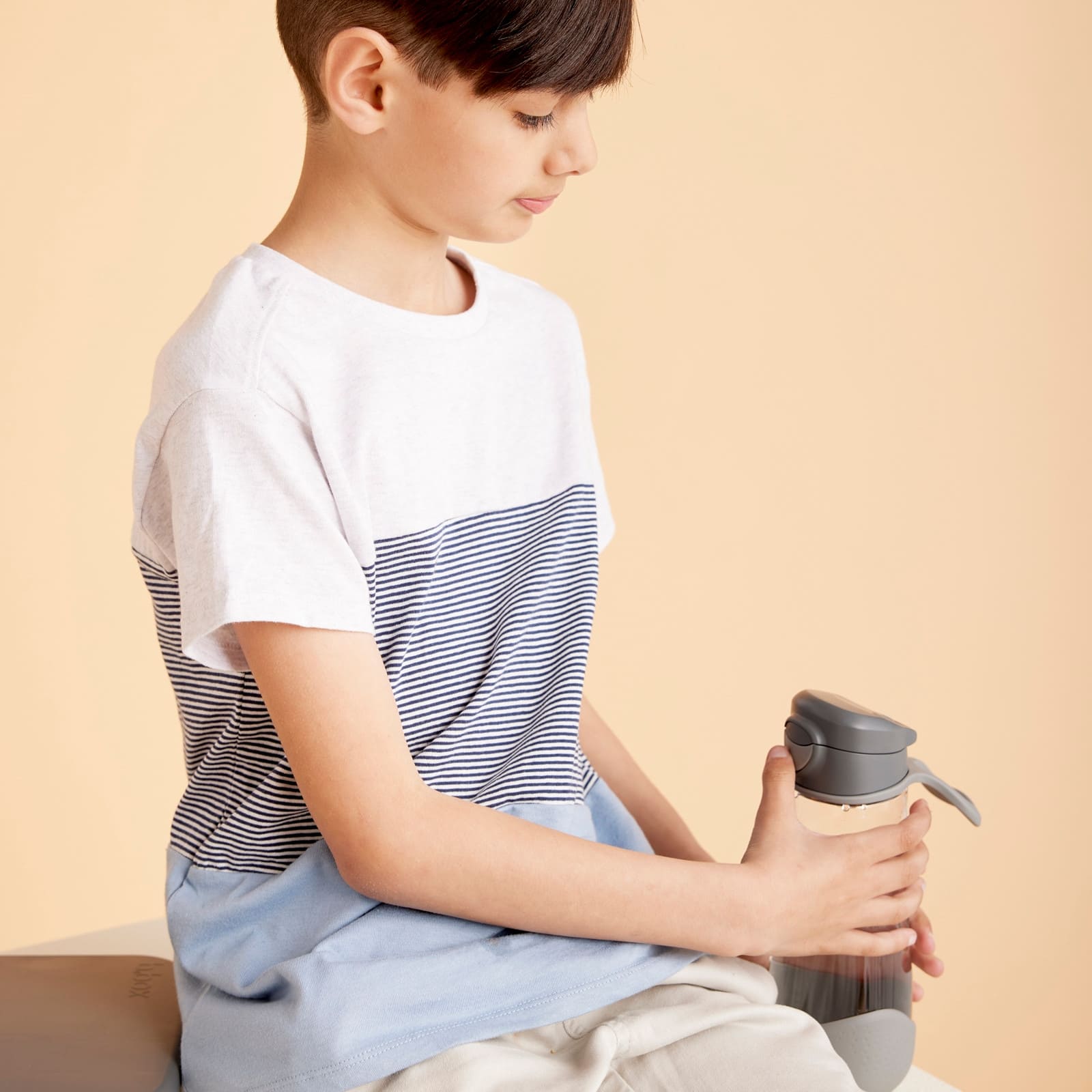 Die Dreiecksform der Trinkflasche liegt sicher und rutschfest in Kinderhänden und macht selbstständiges Greifen und Trinken einfach. Durch die kompakte Bauweise und das Fassungsvermögen von 600 ml haben Kinder genug Flüssigkeit für den Tag, ohne dass die Flasche zu gross oder schwer wird.