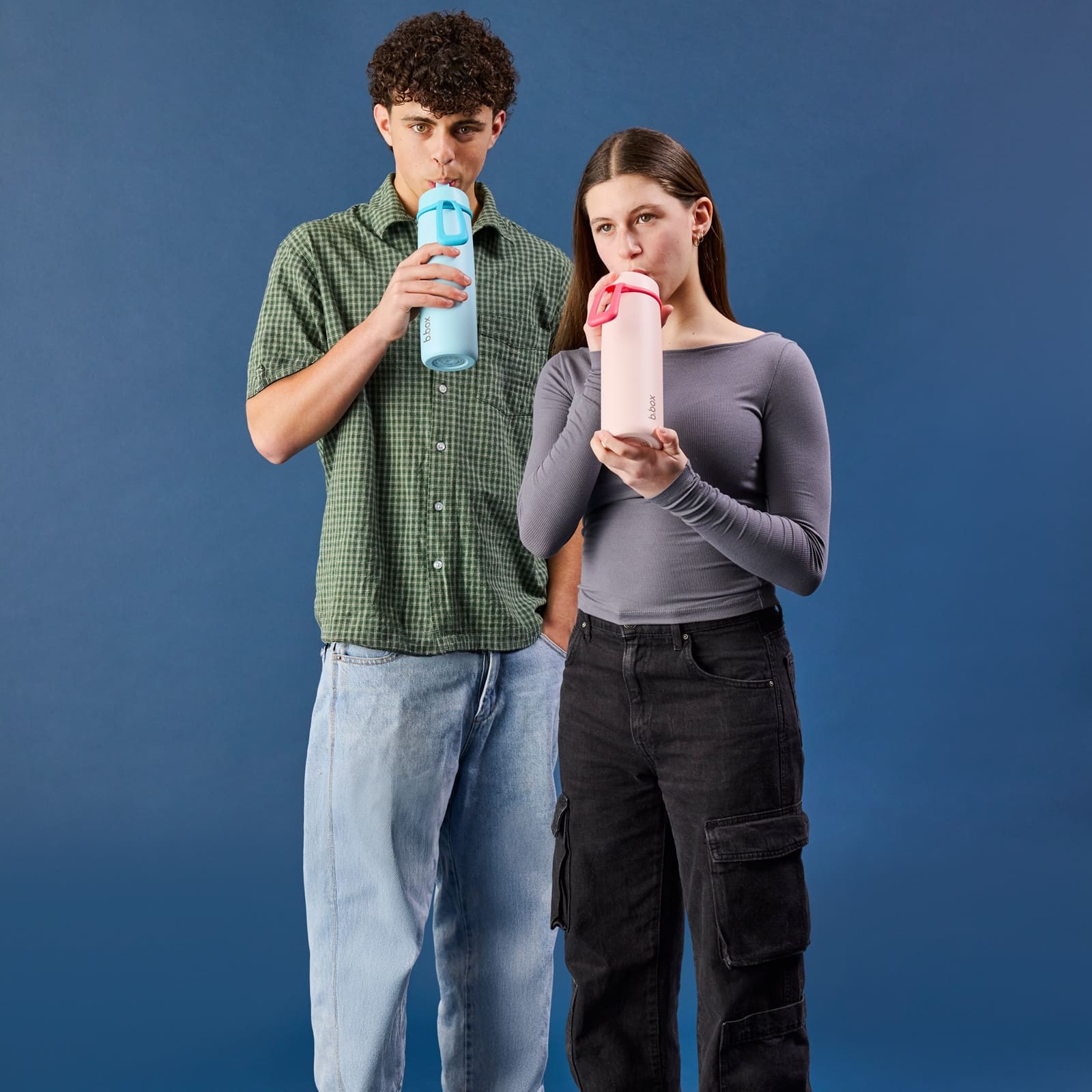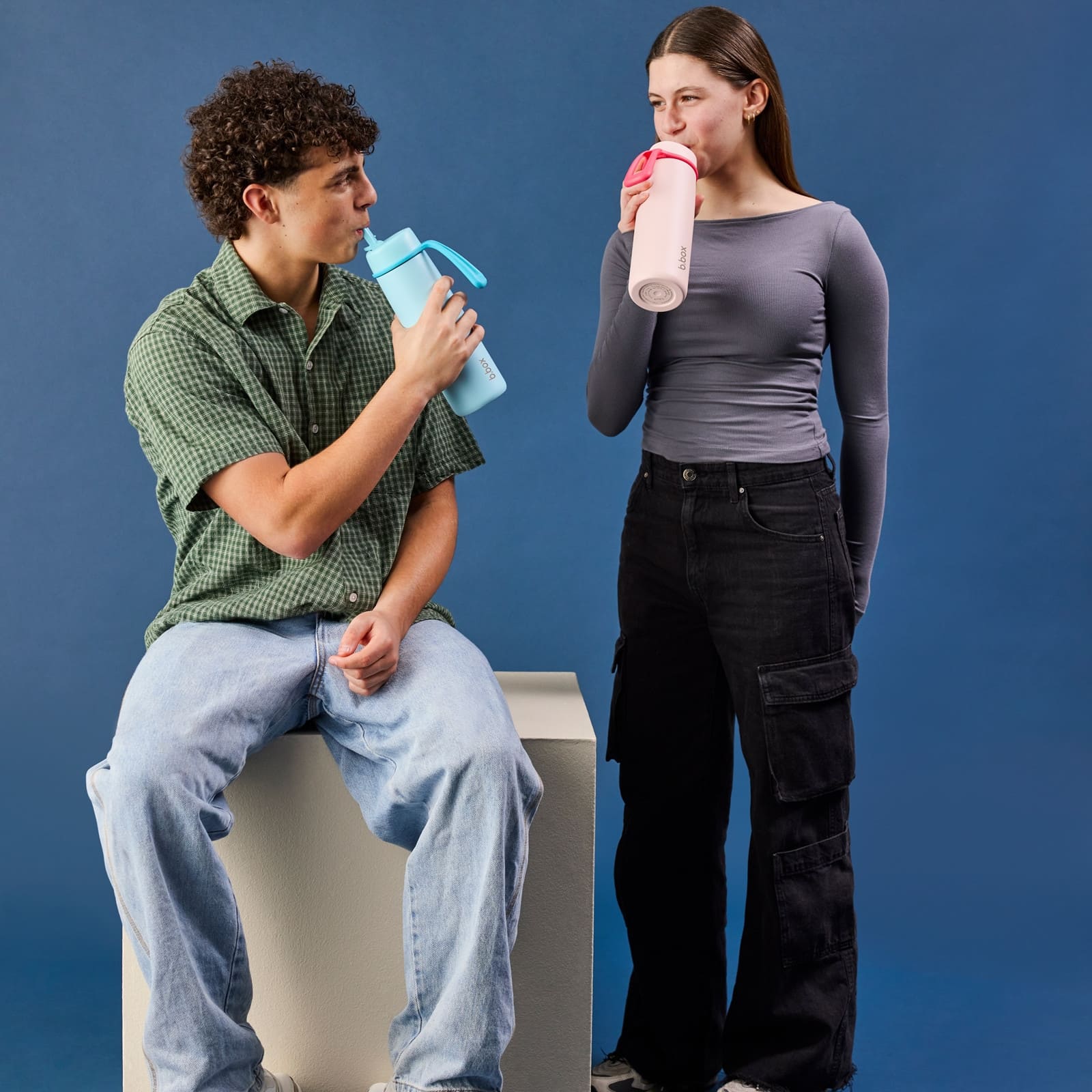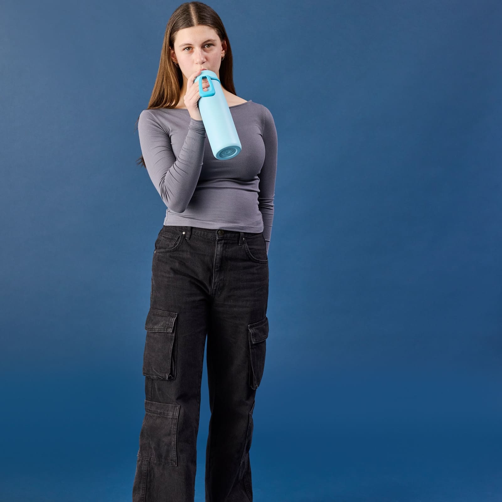 Der praktische Flip-Top-Deckel öffnet mit einer Hand und gibt den Edelstahlstrohhalm frei, sodass du bequem trinken kannst, ohne die Flasche kippen zu müssen. Der Strohhalm liegt angenehm im Mund und lässt sich leicht reinigen.