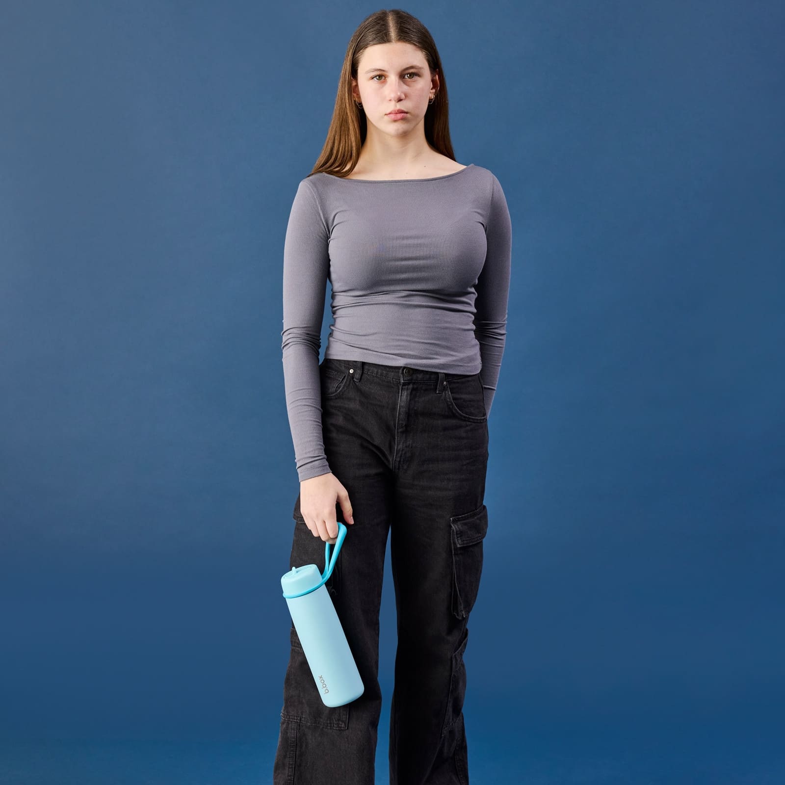 Der Edelstahl-Aussenmantel macht die Flasche besonders robust und langlebig, so begleitet sie dich zuverlässig durch den Alltag ohne schnell an Form oder Funktion zu verlieren.