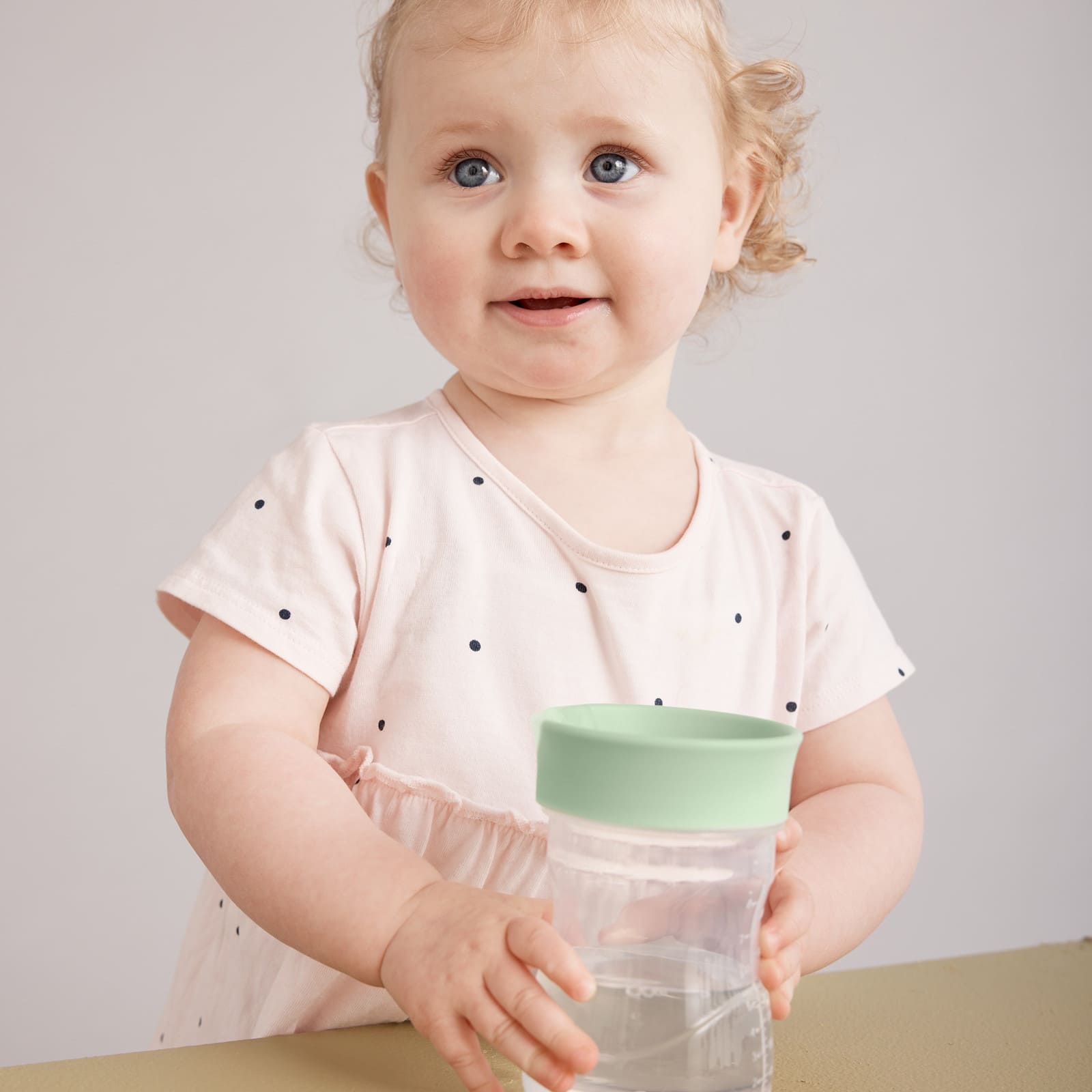 Der Training Rim Cup in der Farbe Sage wurde für Kinder ab 12 Monaten entwickelt und erleichtert den Übergang vom Fläschchen zum offenen Becher. Das durchdachte Free-Flow-System leitet die Flussigkeit kontrolliert zum Rand des Bechers, wodurch Kleckern reduziert wird und die Kleinen selbstbewusst trinken lernen.