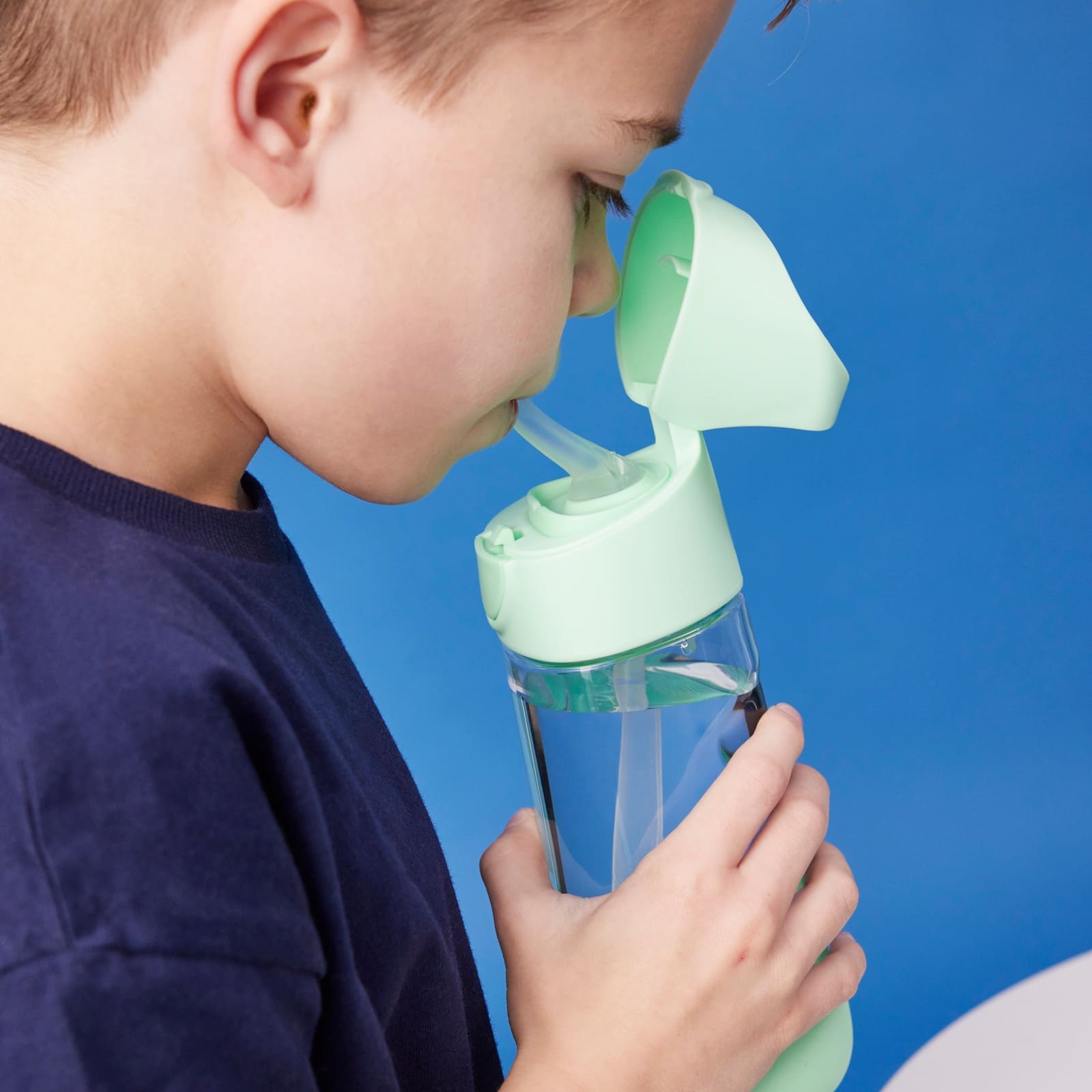 Der integrierte Silikonstrohhalm braucht nur wenig Druck und macht das Trinken für Kinder besonders sanft und einfach. Der Klappdeckel lässt sich per Druckknopf öffnen, so ist schnell trinkbereit, ohne dass Flüssigkeit ungewollt verschüttet wird.
