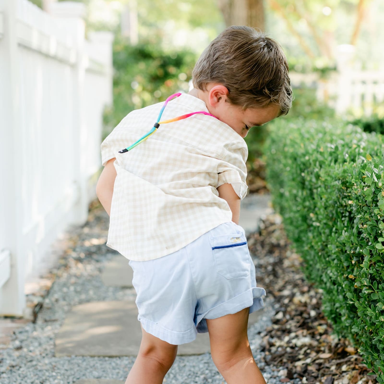 Das Brillenband lässt sich kinderleicht anpassen und sitzt dank dem kleinen Kugelech hinten stets perfekt. Die Verstellfunktion sorgt dafür, dass das Band weder drückt noch verrutscht, sodass dein Kind den ganzen Tag ungestört spielen kann.