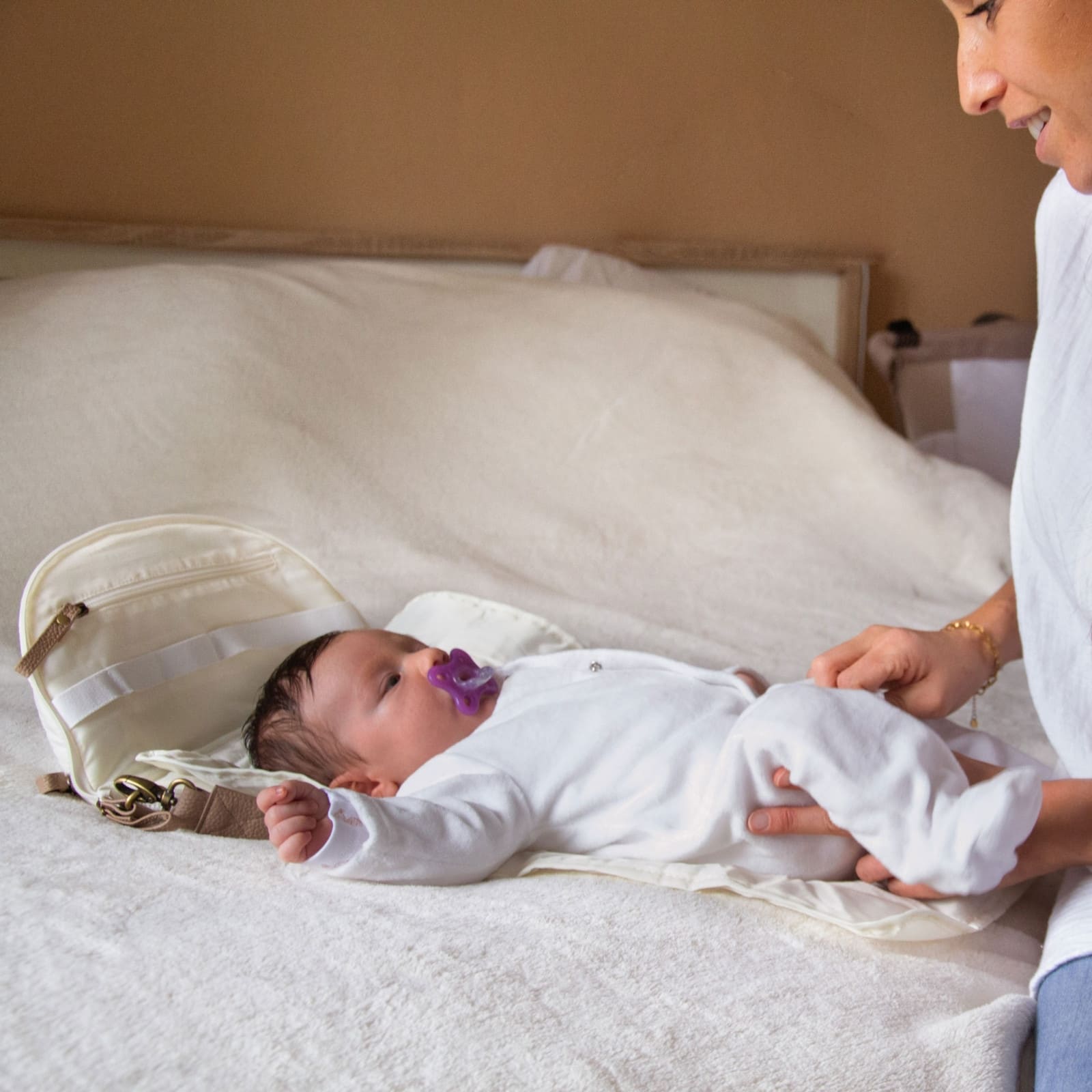 Die Mini-Wickeltasche Armelle wurde für aktive Eltern entwickelt. Kompakt und funktional bietet sie Platz für das Wichtigste, was dein Baby unterwegs braucht. Dank ihres Bauchtaschen-Formats ist sie besonders leicht zu tragen und zu transportieren. Mit nur einem Handgriff lässt sie sich in eine Wickelunterlage verwandeln.