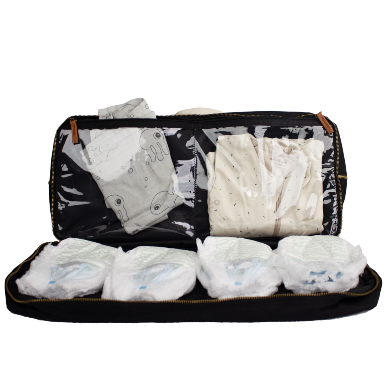 Die Juliette-Tasche ist der ideale Begleiter für Familienreisen. Dank ihres grosszügigen Formats und der zahlreichen Innentaschen bietet sie optimale Organisation, um alles Notwendige auch für mehrere Tage mitzunehmen. Ihr elegantes, zeitloses Design macht sie nicht nur zu einem praktischen Must-have, sondern auch zu einem stilvollen Accessoire. Mitgeliefert werden alle wichtigen Extras wie Wickelunterlage, isolierte Flaschenhalterung und Kulturbeutel. Nach der Babyzeit lässt sich die Tasche auch perfekt als Weekender nutzen.