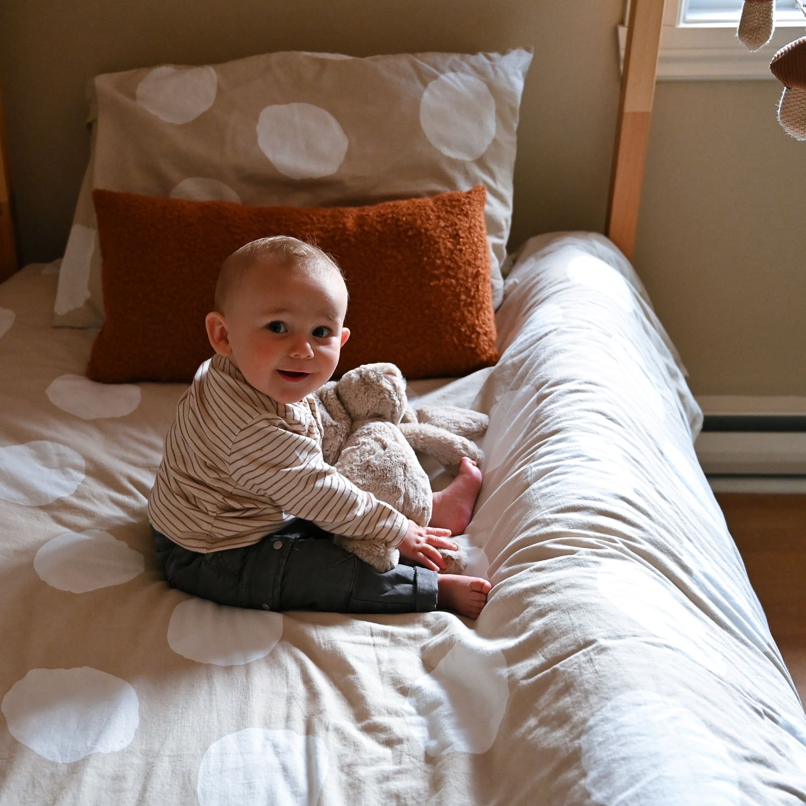 Sorge für einen sicheren Schlaf deines Kleinkinds und reduziere das Risiko nächtlicher Stürze mit den Bümps Bettgittern. Das Set aus zwei flexiblen Rausfallschutz-Elementen passt auf jede Bettgrösse und bietet eine diskrete, zuverlässige Lösung, um dein Kind vom Rand des Bettes fernzuhalten. Dank ihrer vielseitigen Form lassen sich die Bümps ganz einfach unter jedes Spannbettlaken schieben, während Anti-Rutsch-Streifen für sicheren Halt sorgen. Das Aufblasen gelingt mühelos ohne Pumpe, und mit ihrem leichten, kompakten Design sowie der praktischen Transporttasche sind sie perfekt für zuhause und unterwegs. Hergestellt aus langlebigen, ungiftigen Materialien, sind die Bümps frei von BPA, Blei und Phthalaten, für süsse und sichere Träume, egal wo ihr seid.