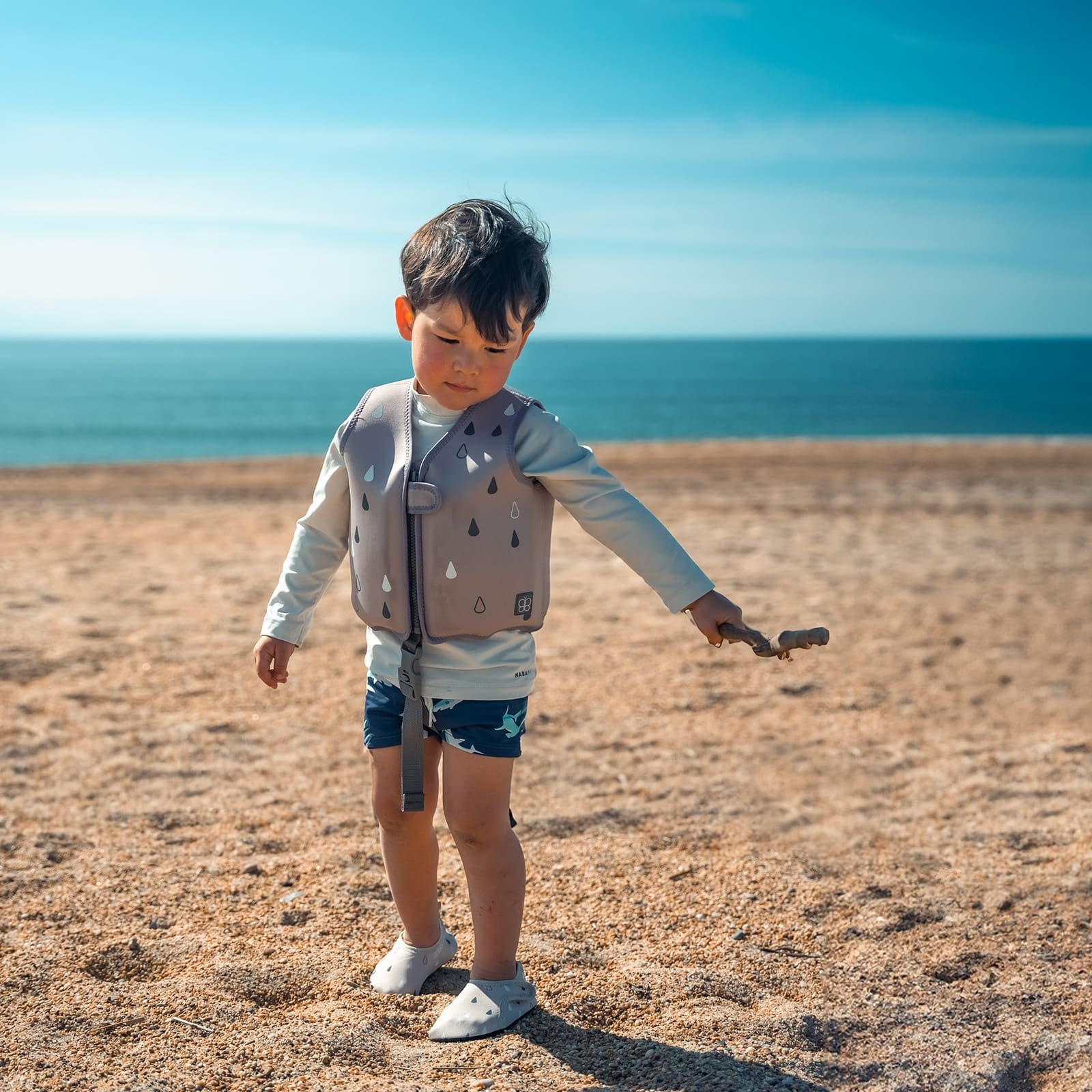 Die Näj Baby-Schwimmweste ist die ideale Wahl für Eltern, die ihren Kindern eine sichere und bequeme Möglichkeit geben möchten, das Schwimmen zu lernen. Ihr durchdachtes Design unterstützt Kinder dabei, Schritt für Schritt Vertrauen im Wasser aufzubauen und fördert so Unabhängigkeit und Freude am Schwimmen. Ausgestattet mit 24 modularen, herausnehmbaren Schwimmkörpern, die aus jeweils drei Schichten bestehen, lässt sich der Auftrieb individuell anpassen und optimal auf die Bedürfnisse des Kindes abstimmen. Das weiche Neopren sorgt für hohen Tragekomfort, während der Stoff gleichzeitig UPF 50+ Sonnenschutz bietet und die Körperwärme hält. Die Weste ist super für lange und sichere Badeabenteuer geeignet. Dank des praktischen Frontreissverschlusses ist die Weste schnell an- und ausgezogen, sodass mehr Zeit zum Spielen und Entdecken im Wasser bleibt. Die Näj Schwimmweste vereint Sicherheit, Komfort und Funktionalität und ist ein zuverlässiger Begleiter für die ersten Schwimmversuche deines Kindes.
