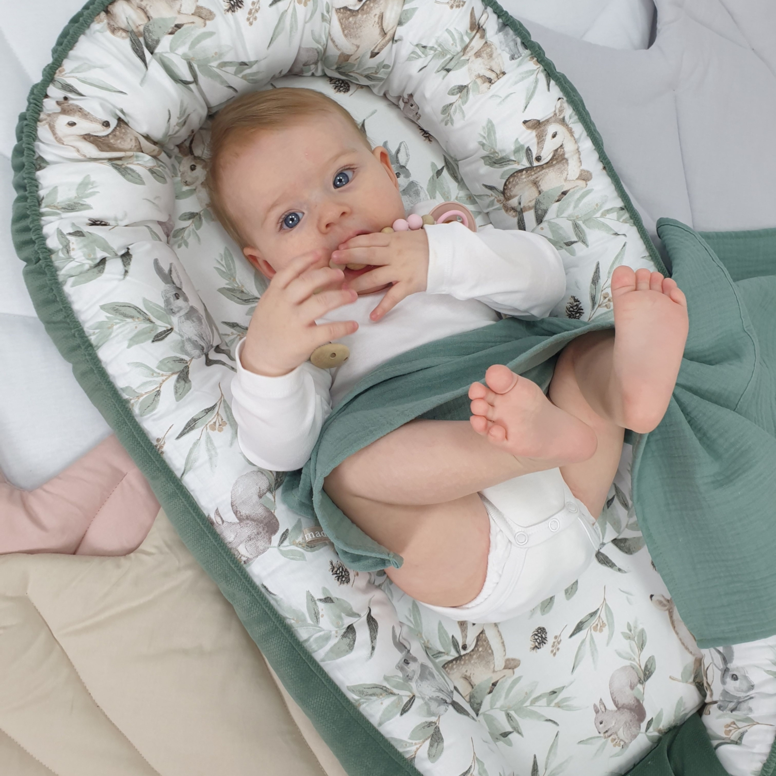 BISAL Cocoon Reh grün – Babynest für Komfort und Geborgenheit