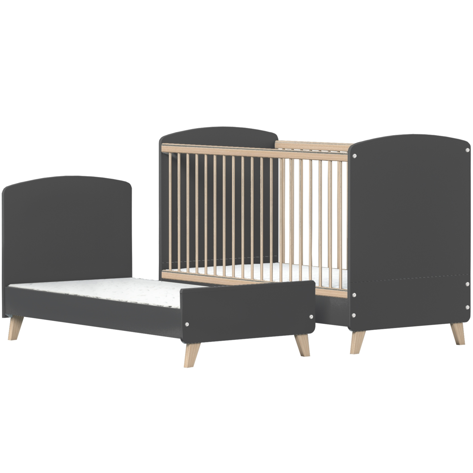 Das BISAL Colette Bett verbindet einen modernen Anthrazitton mit einem warmen Eichenholzeffekt. Die dezente Farbkombination schafft eine ruhige, einladende Atmosphäre im Kinderzimmer und passt sich unterschiedlichen Einrichtungsstilen an.