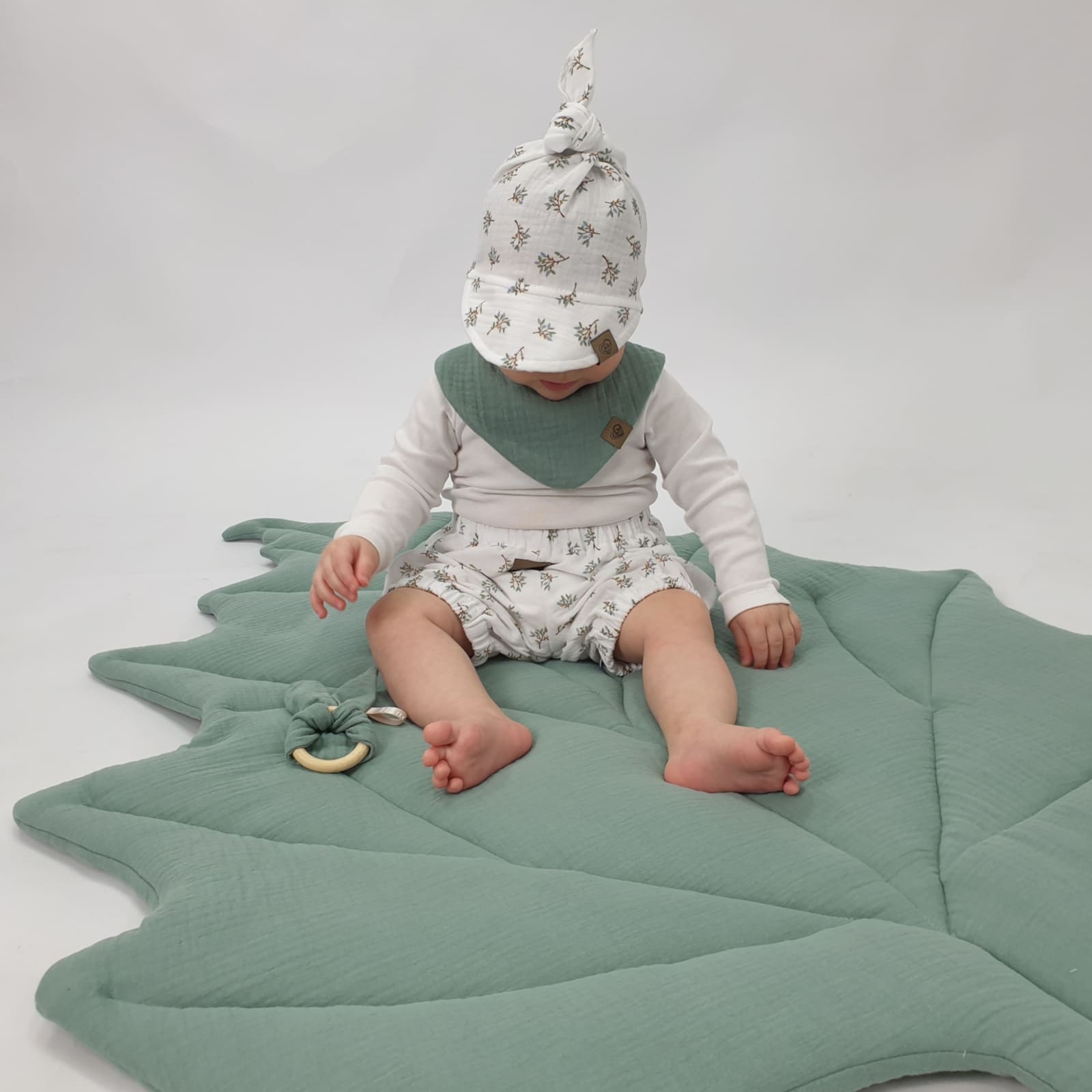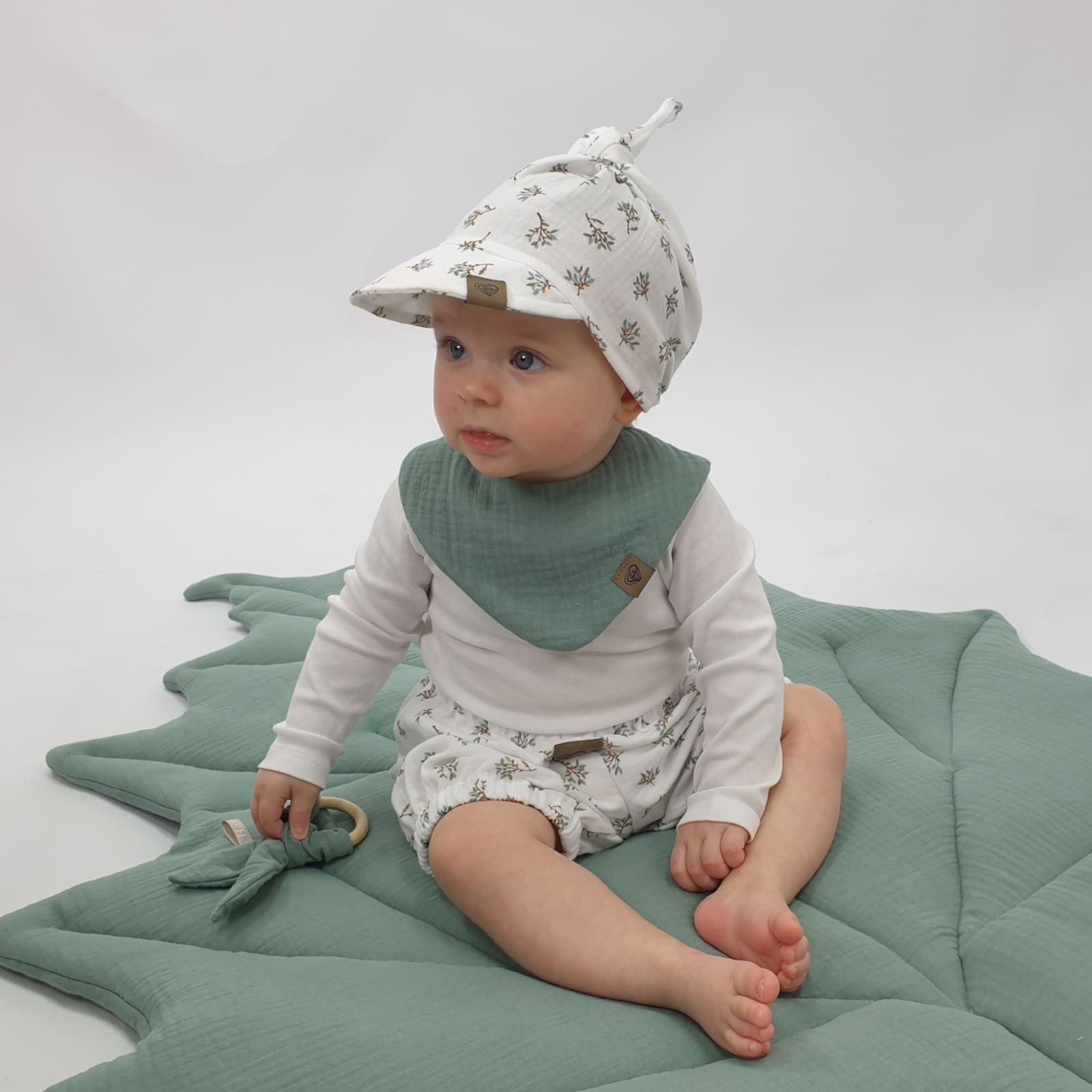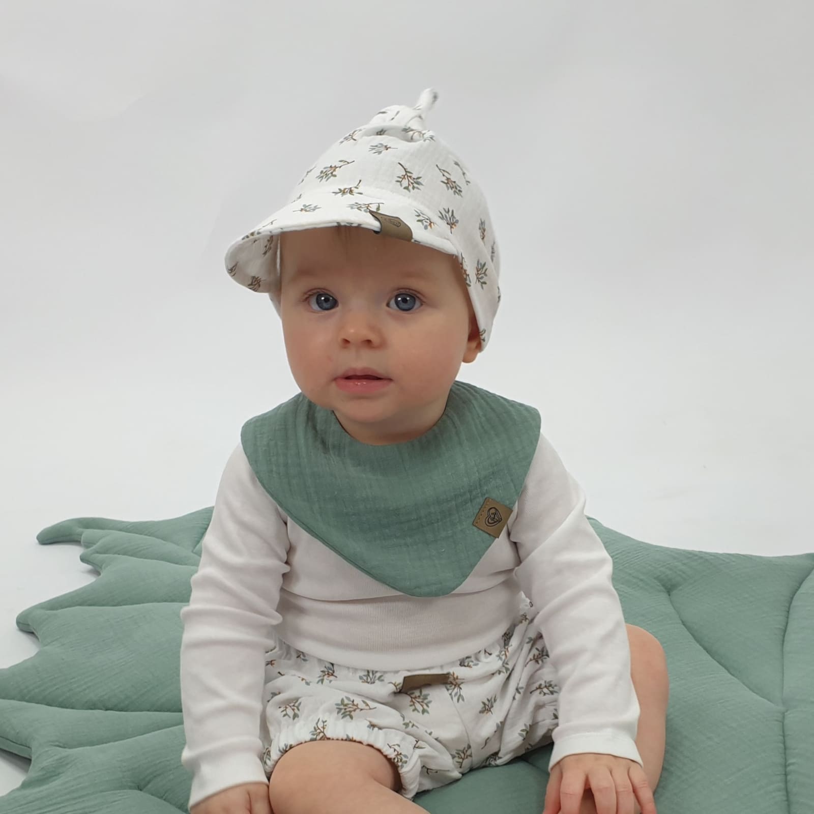 Die Kopftücher sind aus feinem Musselin gefertigt, ein weicher und atmungsaktiver Stoff, der sich besonders für zarte Babyhaut eignet. Das leichte Material sorgt für gute Luftzirkulation, sodass dein Baby auch an warmen Tagen nicht überhitzt.