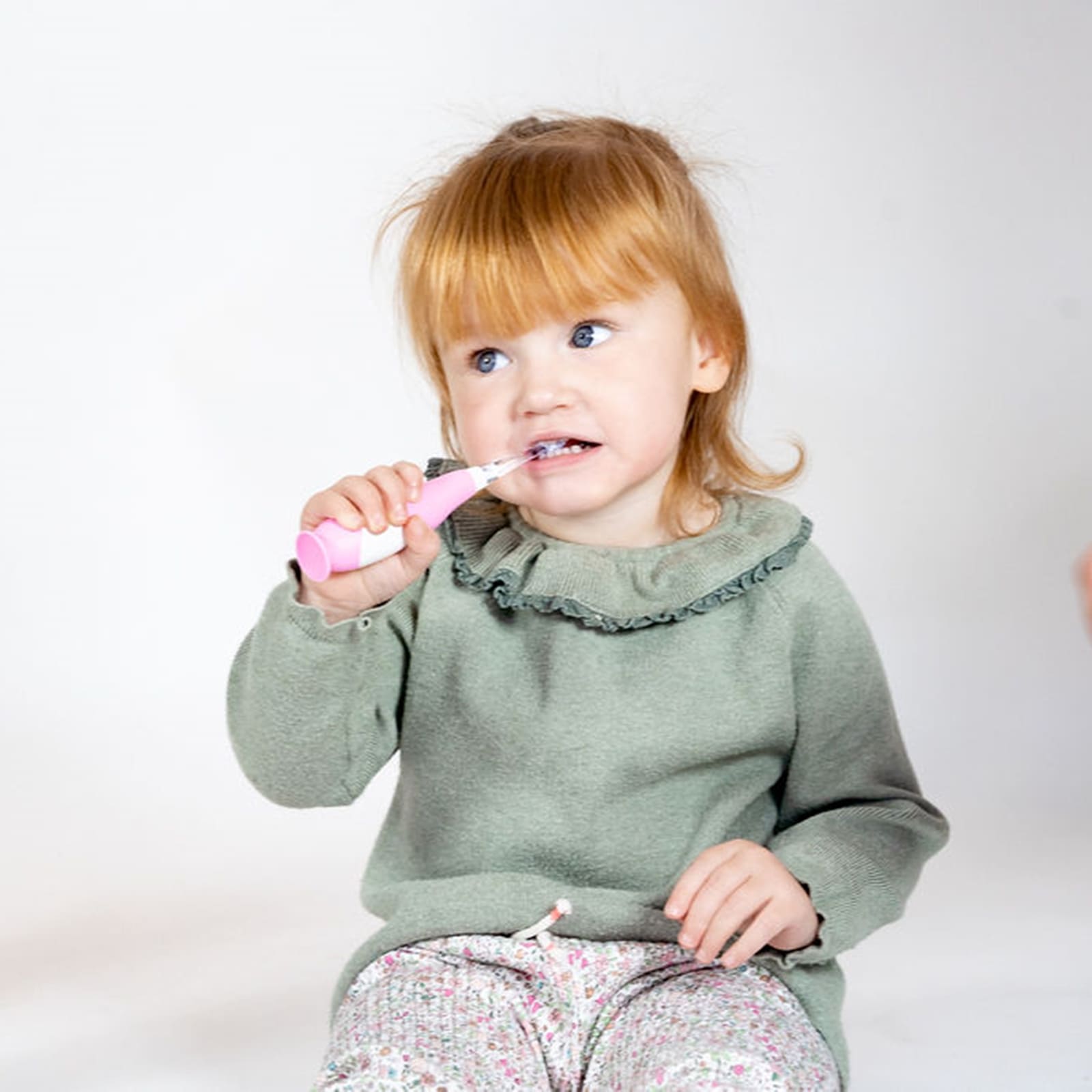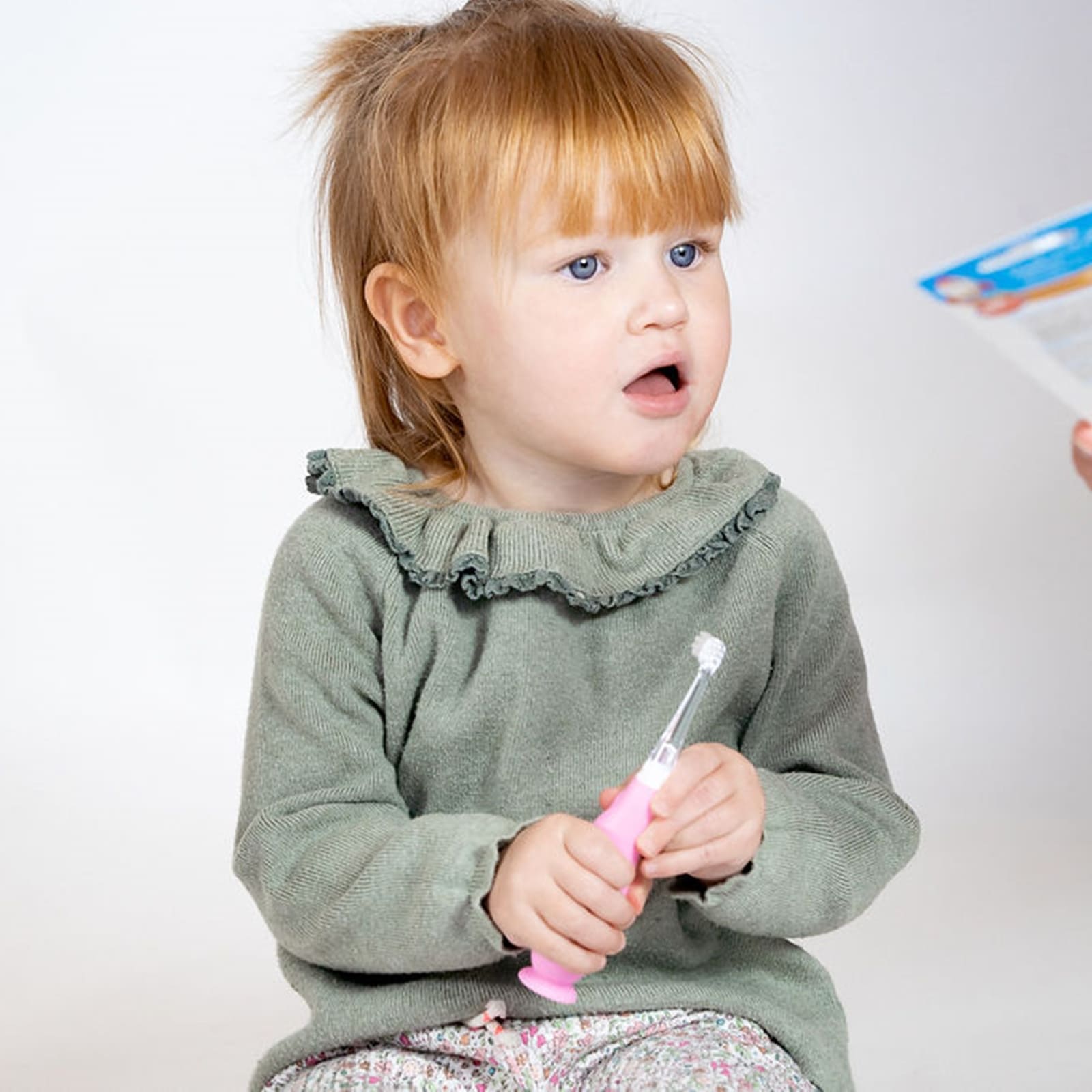 Die BabySonic in zartem Pink wurde speziell auf die empfindlichen Bedürfnisse von Babys und Kleinkindern abgestimmt. Die extra weichen Borsten reinigen Milchzähne schonend und schützen das zarte Zahnfleisch, sodass der erste Kontakt mit Zahnpflege positiv und schmerzfrei verläuft.