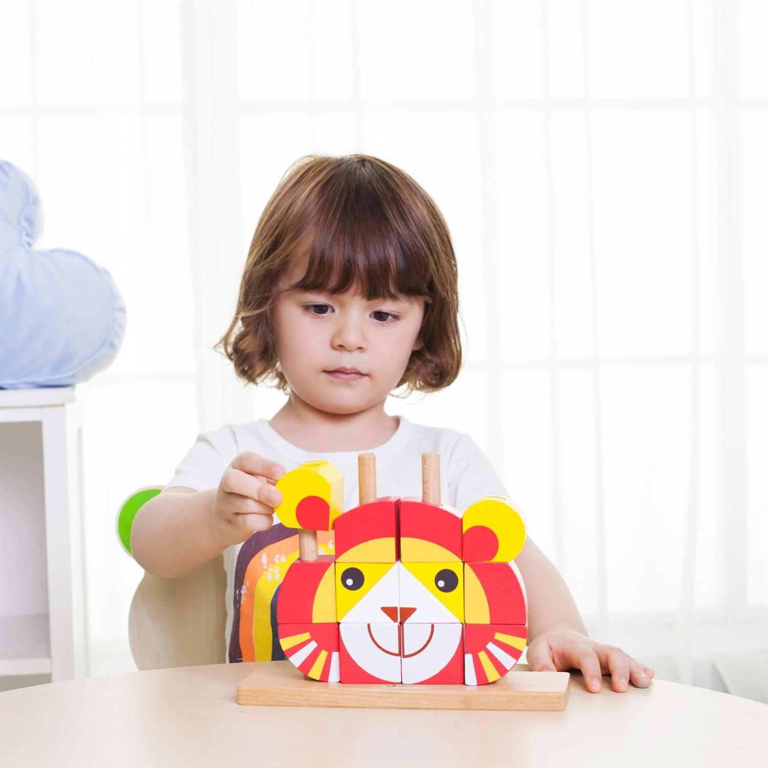 Das Set enthält 14 einzelne Bausteine, mit denen dein Kind einen Löwen und viele andere Figuren oder fantasievolle Objekte gestalten kann. Die Formen lassen sich vielseitig kombinieren und laden zum freien Experimentieren ein.
