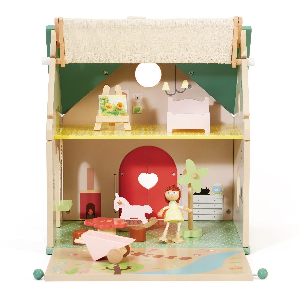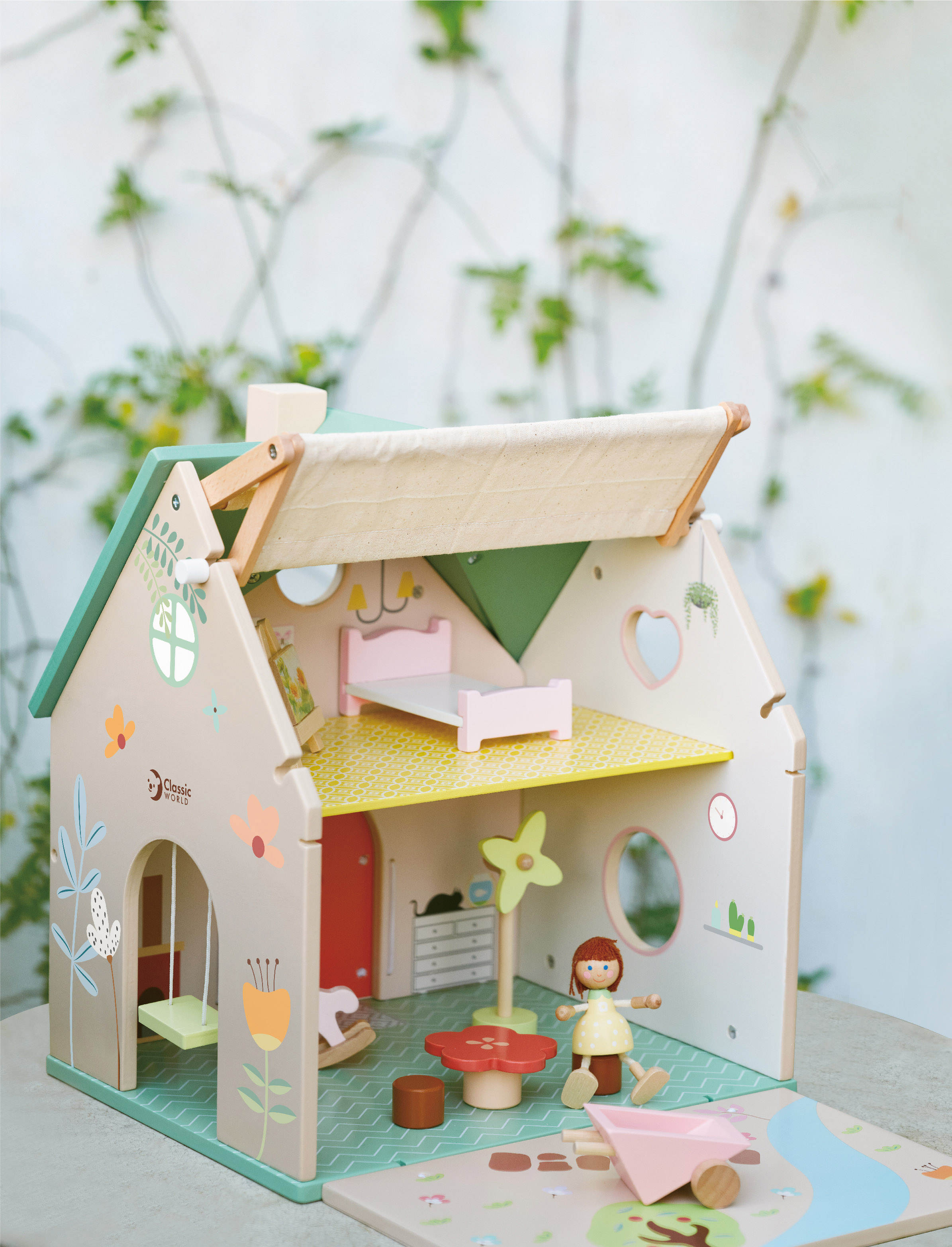 Puppen, Kuscheltiere und andere Begleiter finden im Landhaus einen eigenen, kindgerechten Platz. Die übersichtliche Grösse und die liebevollen Details regen zu Geschichten und Rollenspielen an, die emotionales Verständnis stärken.