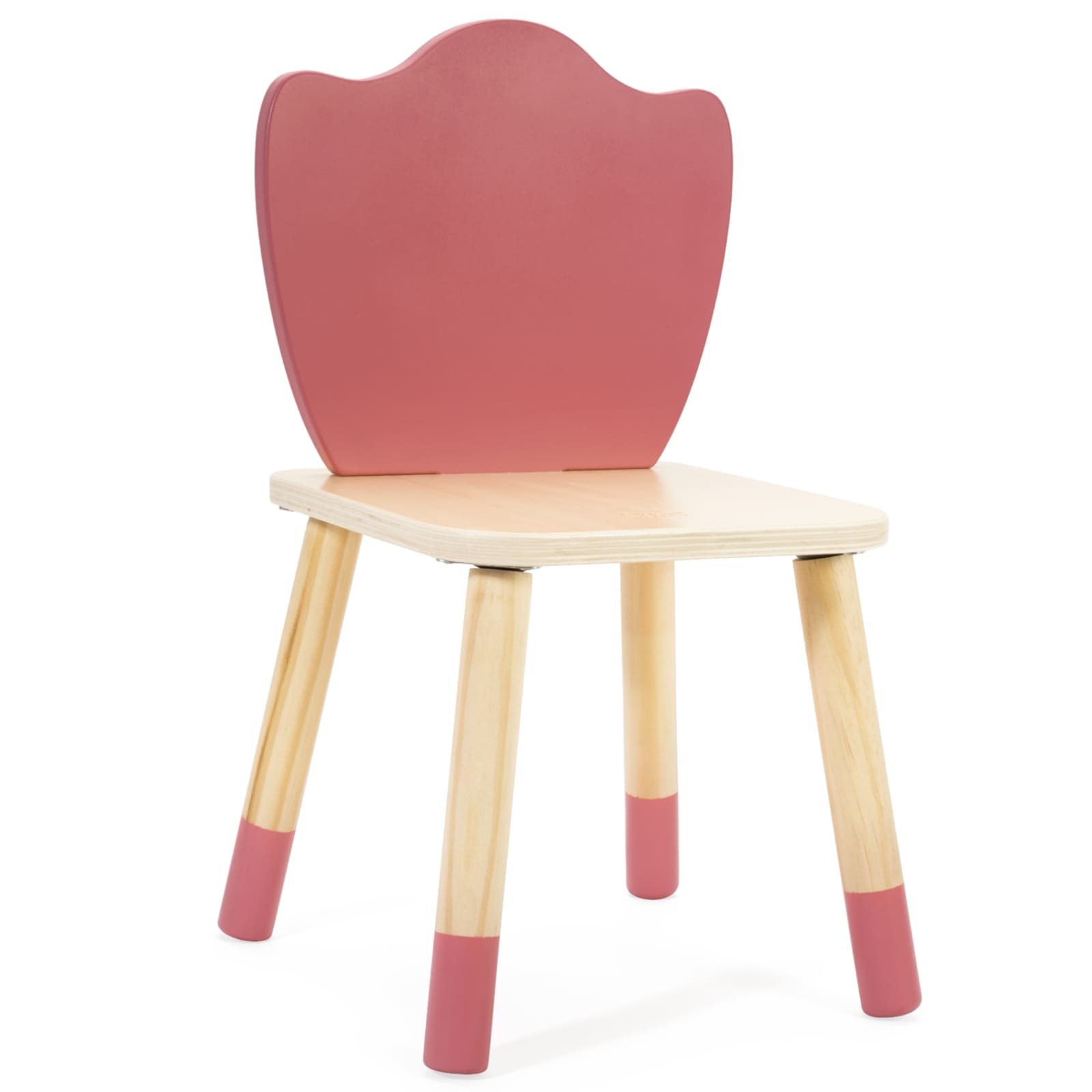 Der Stuhl besticht durch eine anmutige Tulpenform der Rückenlehne, die jedem Zimmer eine stilvolle Note verleiht. Das schlichte, zeitlose Design fügt sich harmonisch in Kinderzimmer, Wohn- oder Essbereich ein und macht den Stuhl zu einem dekorativen Blickfang.