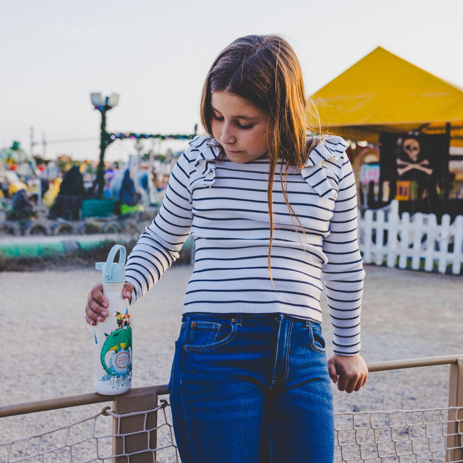 Die neue Version der Thermosflasche Kids Edition hat ein Fassungsvermögen von 350ml. Sie sind etwas grösser als die Kids-Flaschen, haben aber die gleiche Qualität und werden mit dem gleichen Zubehör geliefert. Dank der einzigartigen Triple Cool™-Technologie mit dreifacher Schicht geniessen die Kleinen 36 Stunden lang kalte Getränke oder bis zu 18 Stunden lang heisse Getränke. Die Flasche wird mit zwei verschiedenen Verschlüssen und einem absolut luftdichten Verschluss geliefert, sodass sie im Rucksack transportiert werden kann. Sie ist besonders gesund, da sie aus hochwertigem 18/8 lebensmittelechtem Edelstahl gefertigt und vollständig BPA-frei ist. Dieses Material ist äusserst hochwertig und nimmt weder Geschmack noch Geruch an. Sollte nur von Hand gewaschen werden.