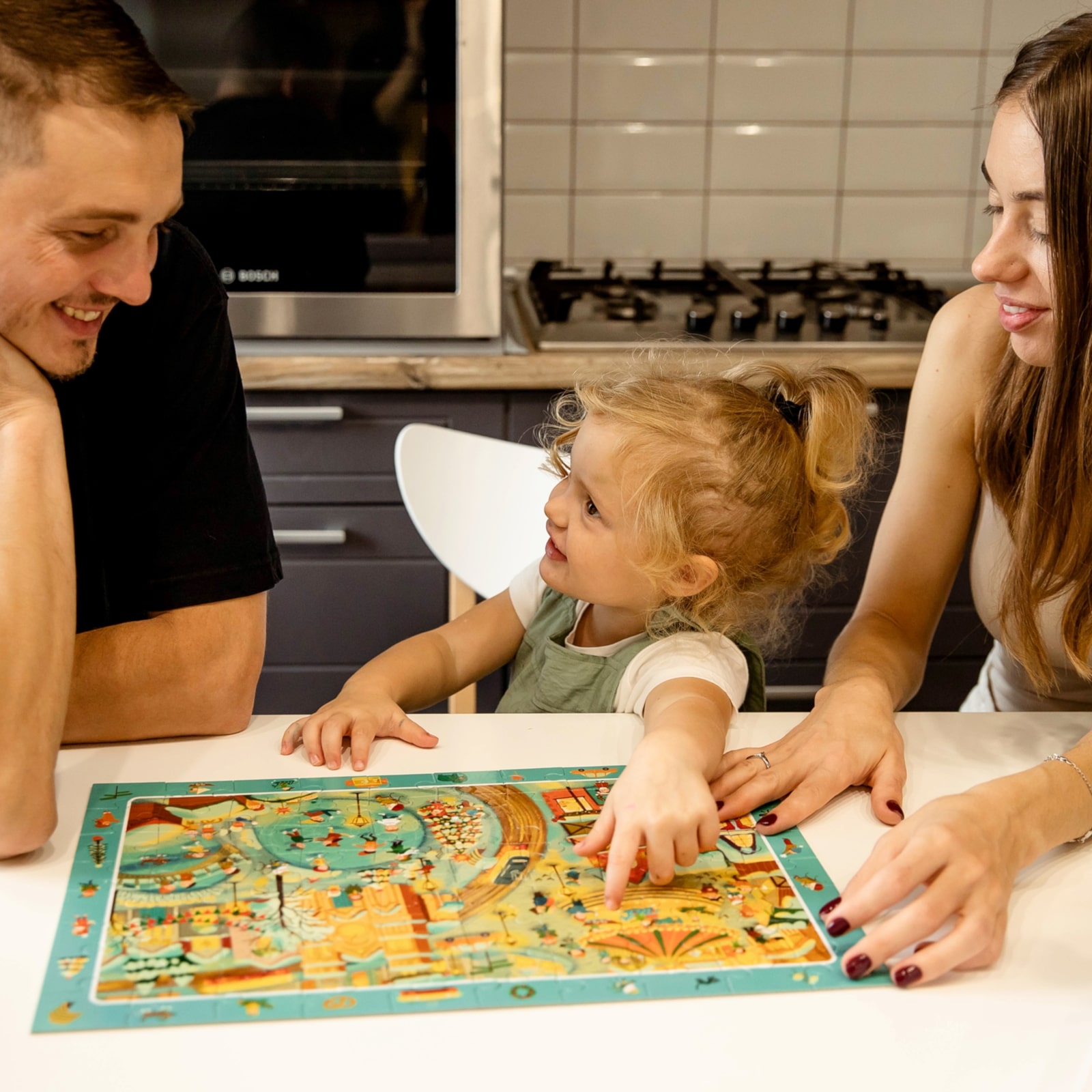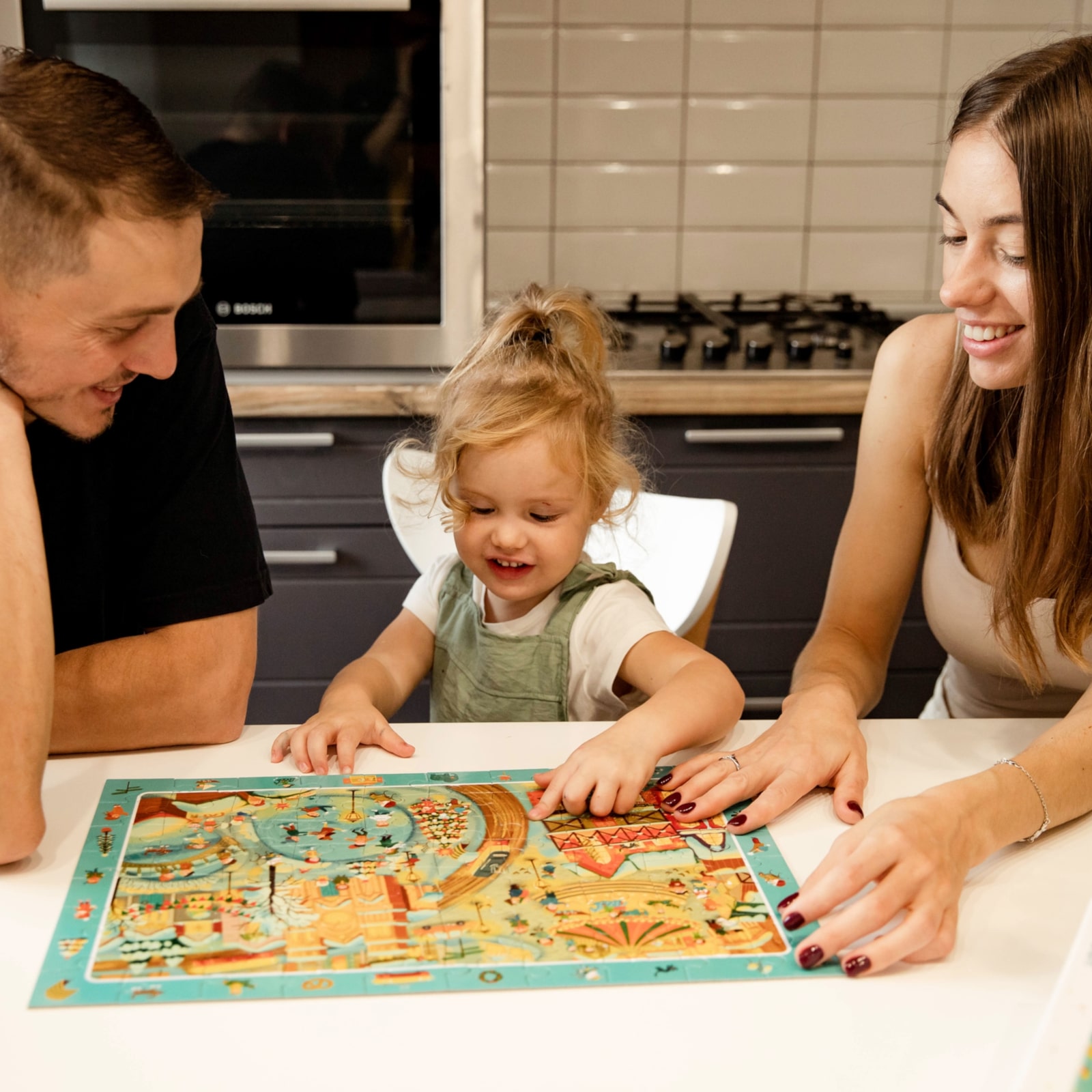 Das Puzzeln stärkt visuelle Wahrnehmung, Problemlösefähigkeiten und Feinmotorik. Kinder lernen, Formen zu erkennen und Teile gezielt zusammenzufügen – eine einfache, aber wirkungsvolle Übung für logisches Denken und Ausdauer.