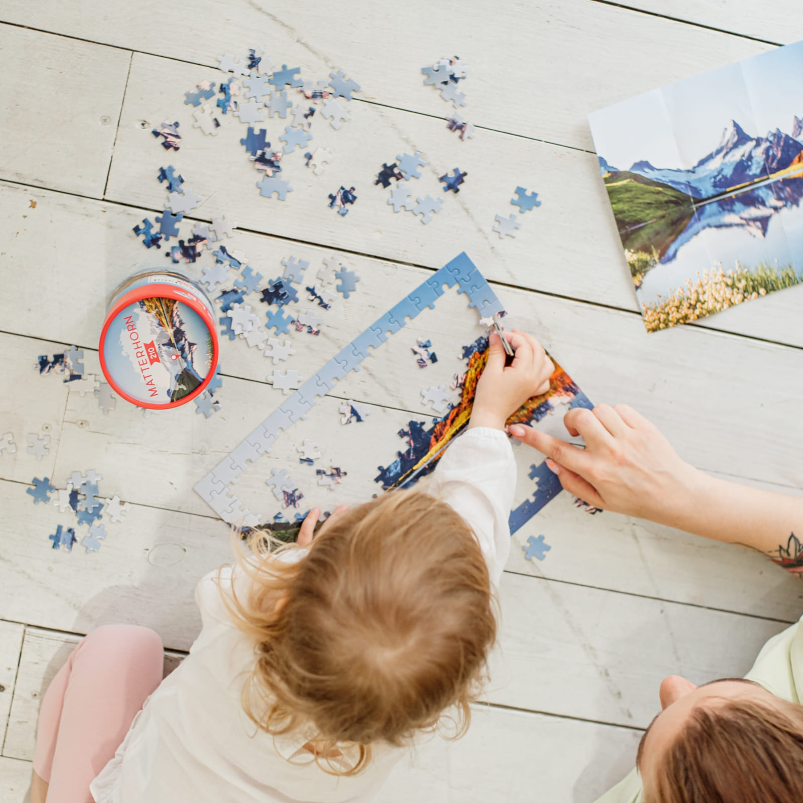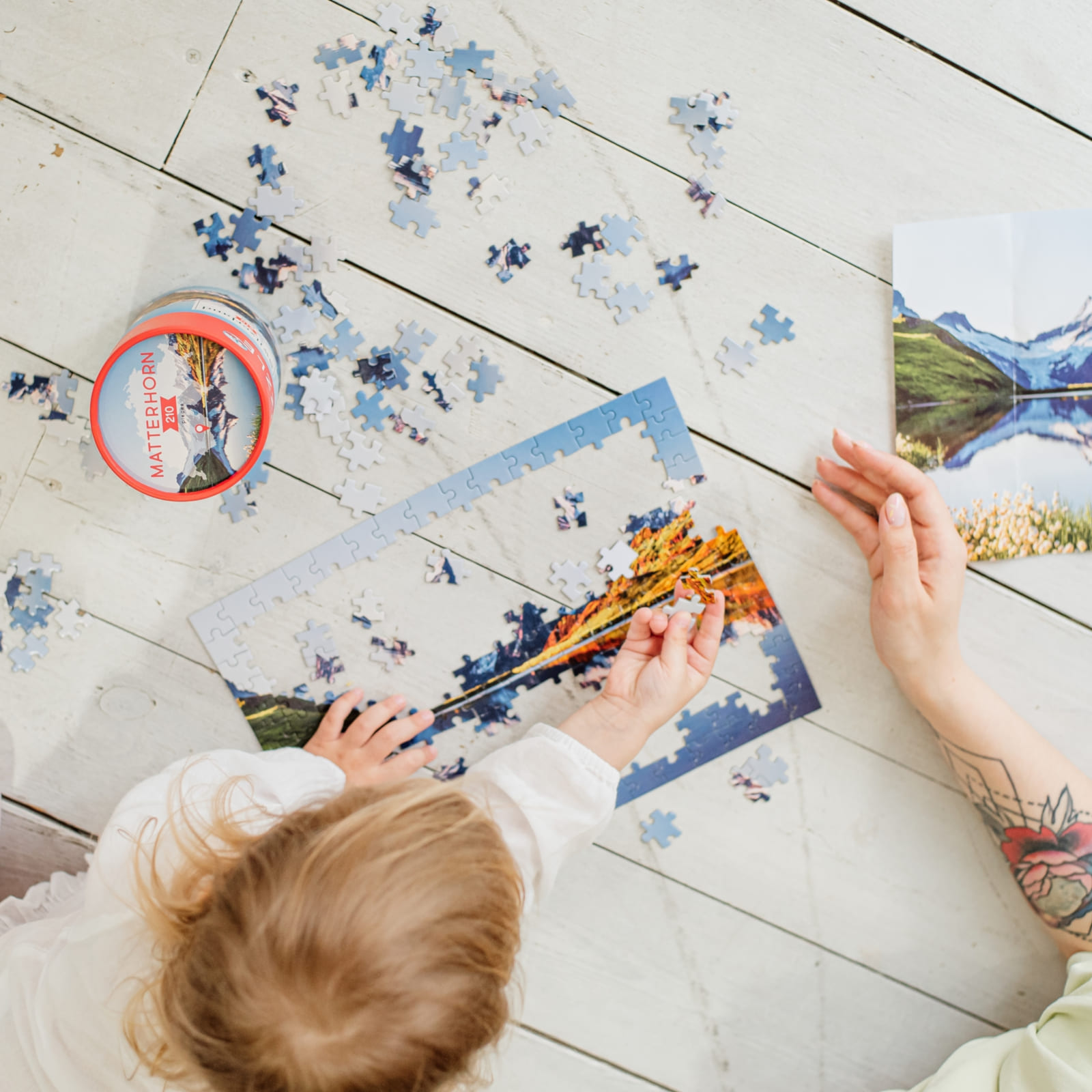Das DODO Puzzle Matterhorn eignet sich hervorragend als gemeinsames Projekt für die ganze Familie. Beim Puzzeln wird kommuniziert, geplant und zusammen gelacht, was das Miteinander stärkt.