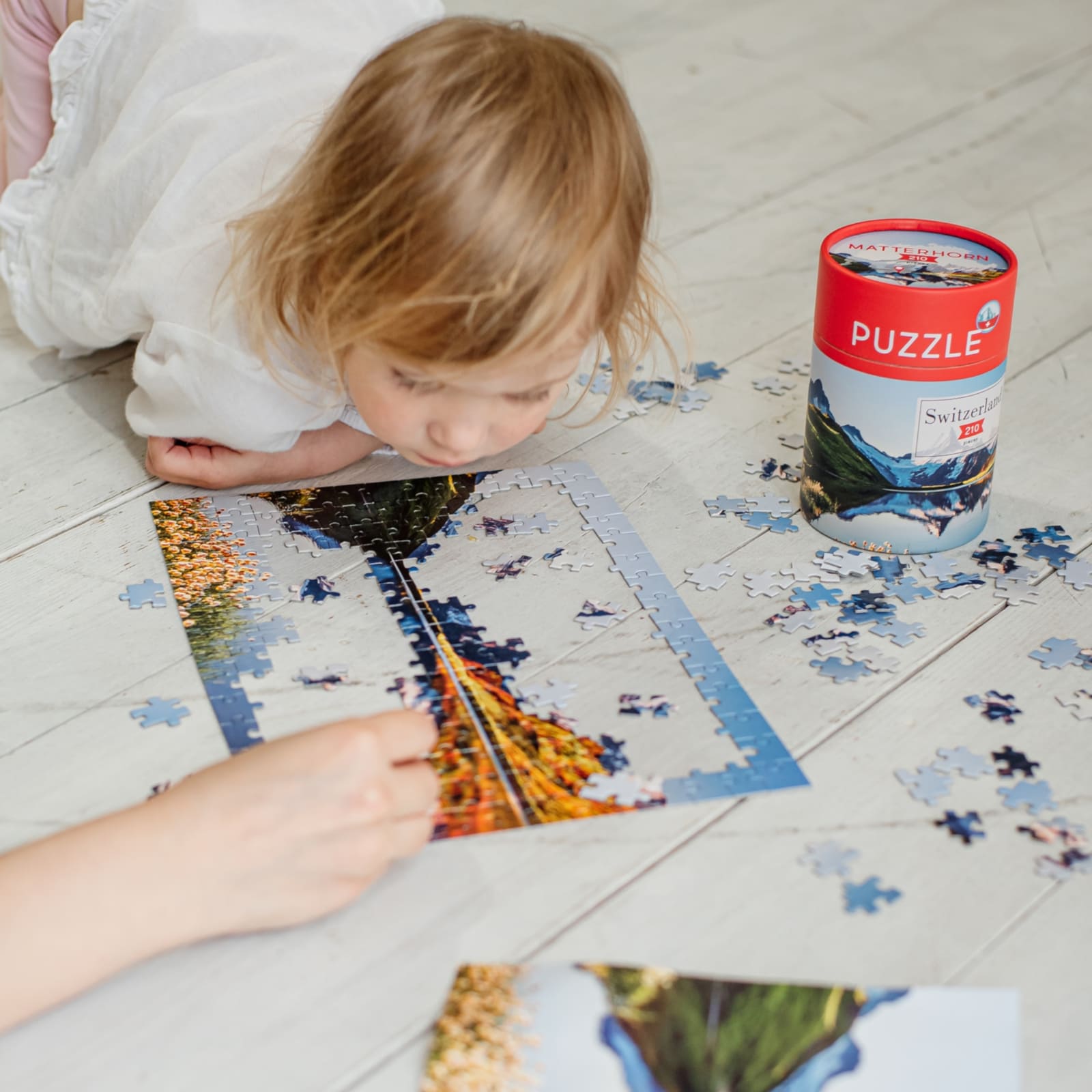 Das Motiv zeigt den ikonischen Matterhorn-Gipfel und bringt die alpine Stimmung direkt ins Wohnzimmer. Ideal für gemütliche Nachmittage und als entspannte gemeinsame Aktivität.