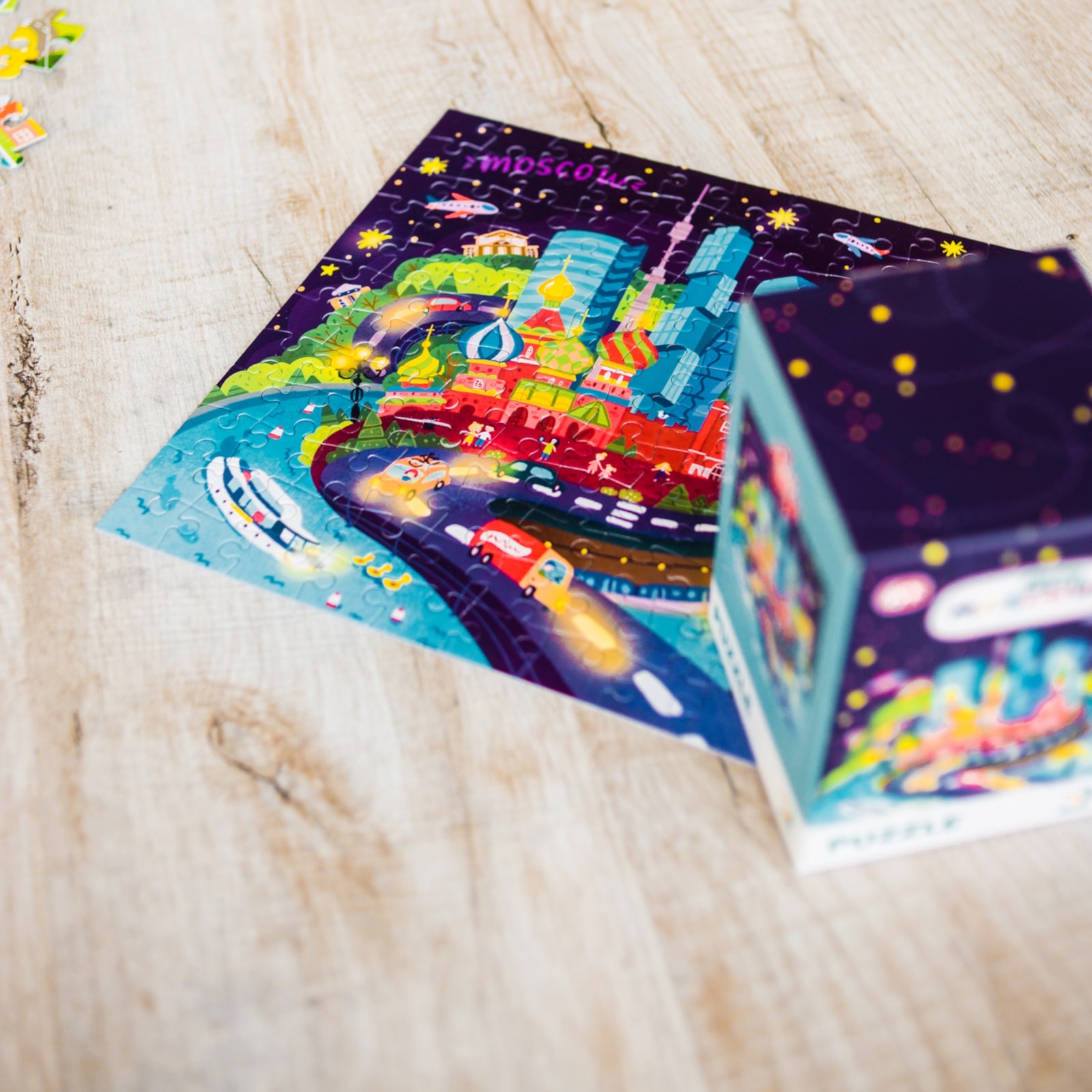 Das farbenfrohe Motiv zeigt kindgerecht illustrierte Wahrzeichen der Stadt Moskau und lädt zu einer kleinen Entdeckungsreise ein. Die detailreiche, aber klare Gestaltung hilft, Formen und Farben zu erkennen und macht das Puzzle attraktiv für junge Kinder.