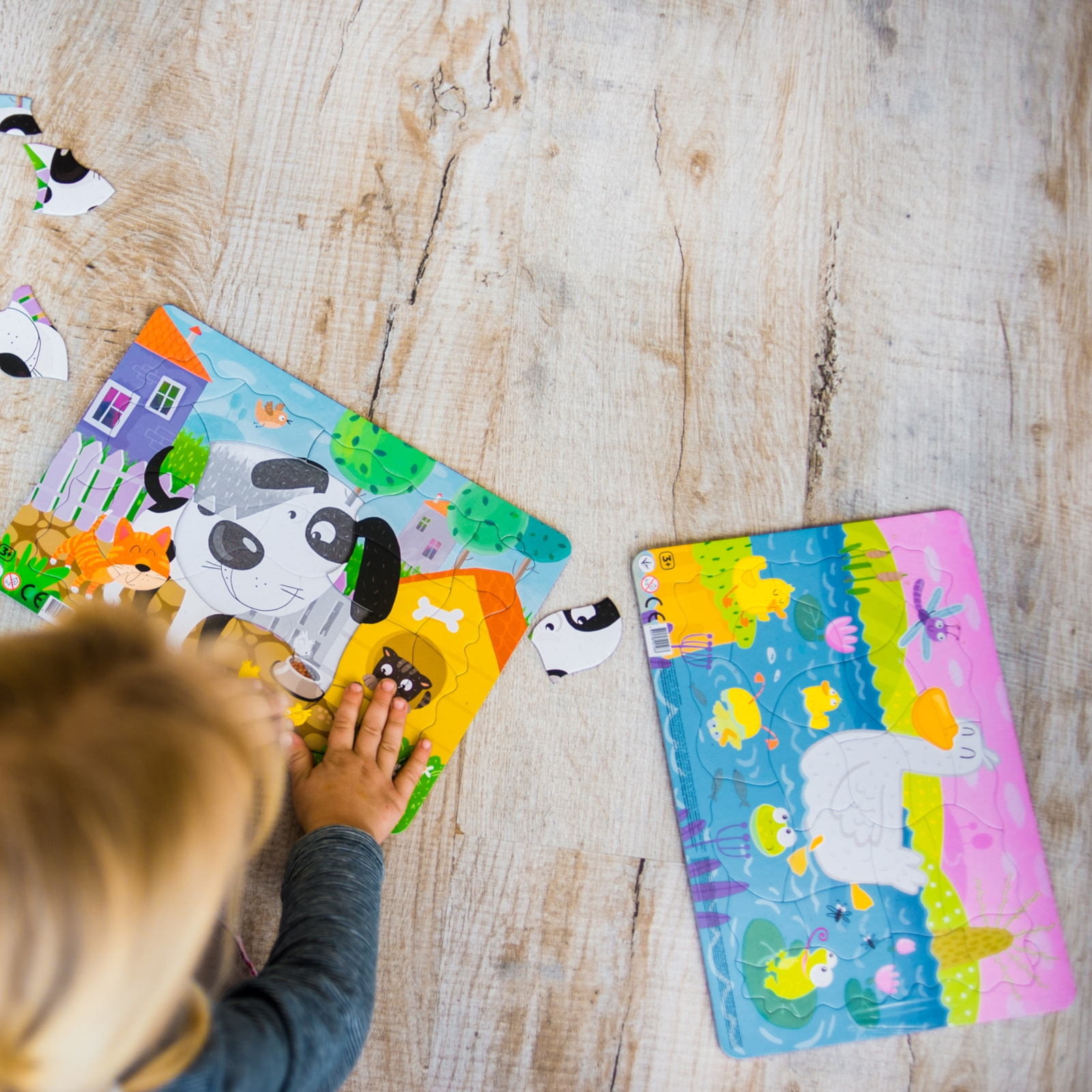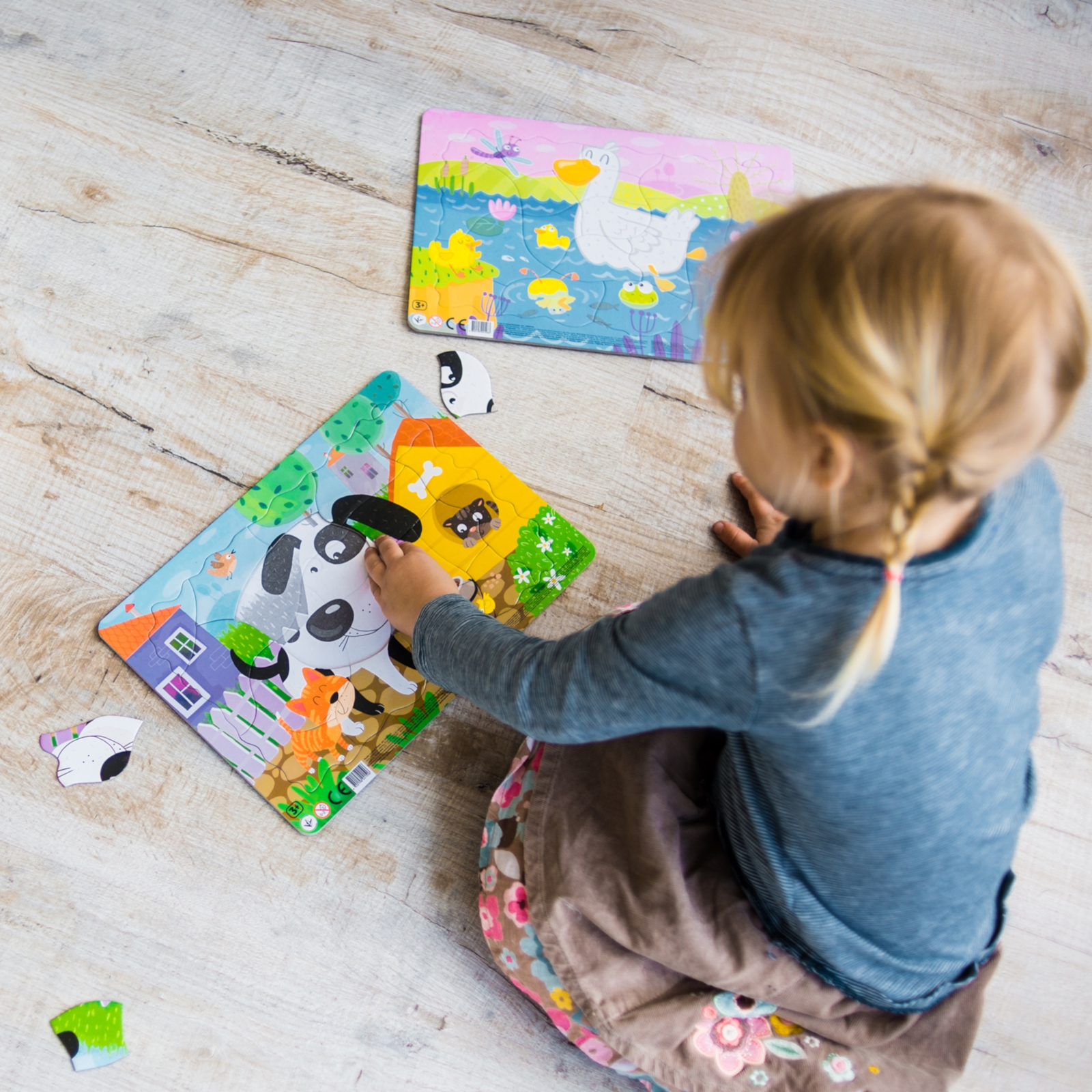 Auf der Rückseite sind die äusseren Kanten der Puzzleteile eingestanzt, sodass Formen und Positionen leichter erkannt werden. Diese clevere Unterstützung hilft deinem Kind, passende Teile schneller zu finden und das räumliche Denken zu schärfen.