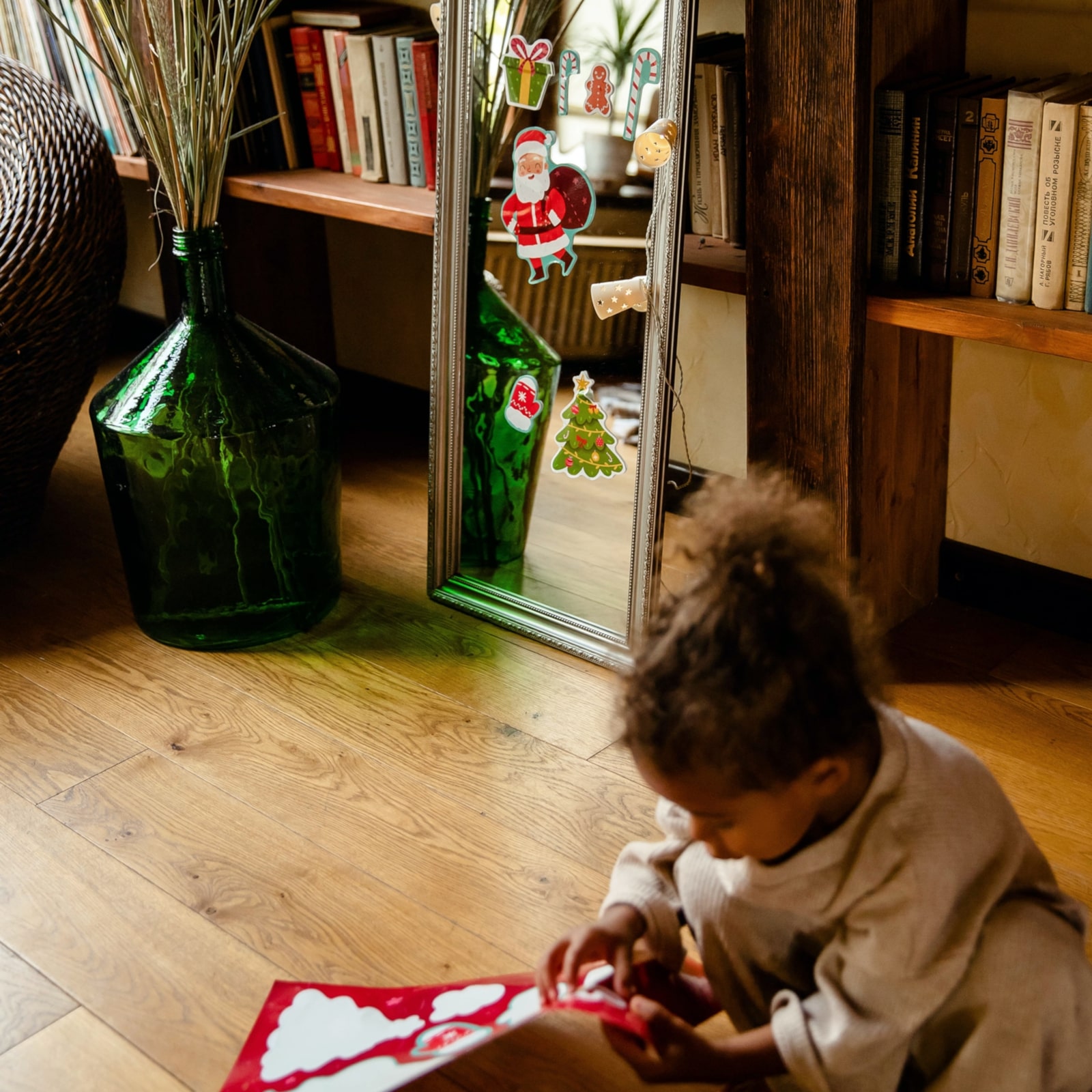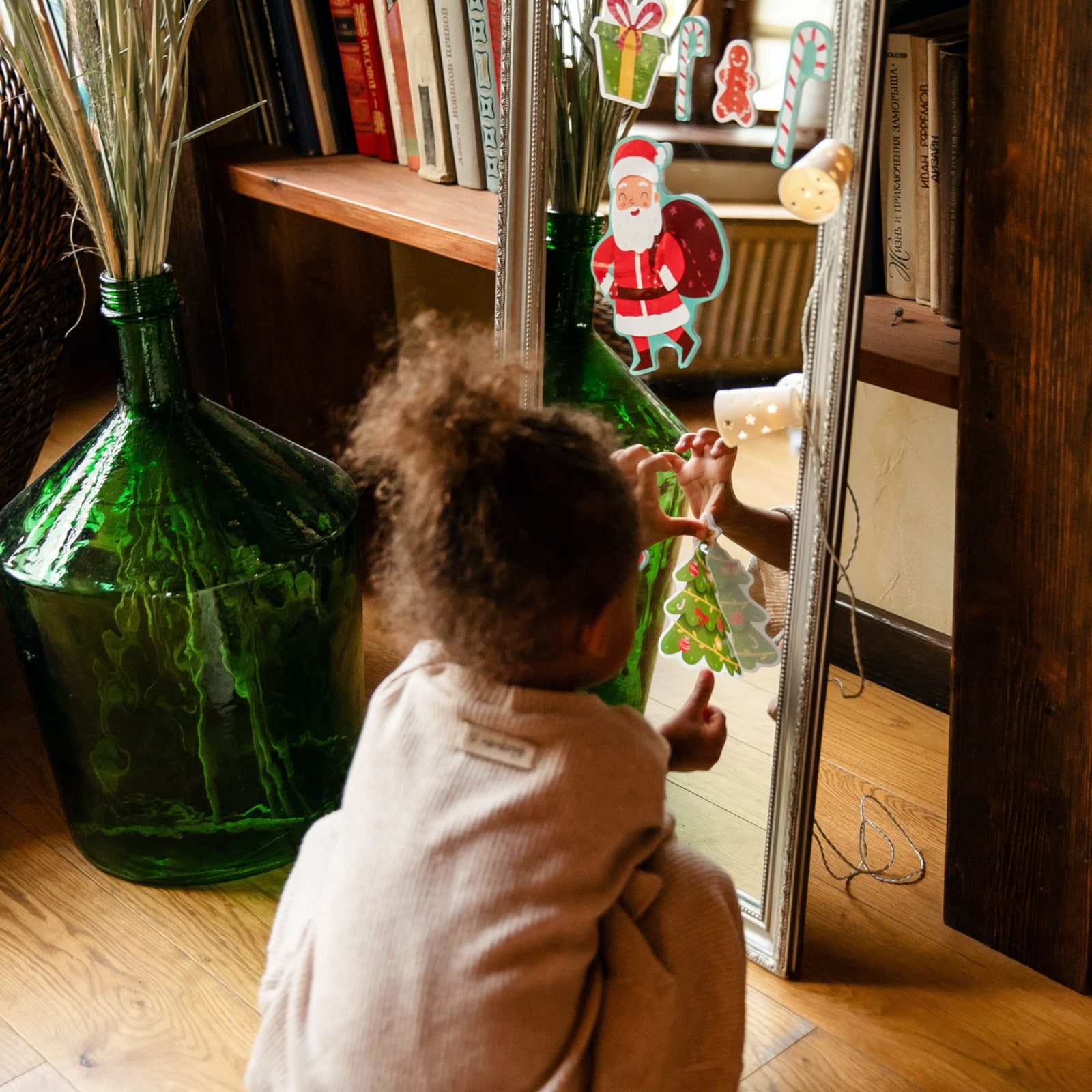 DODO Wandsticker Weihnachtssujets – 11 festliche Sticker, ab 36 Monaten Vielfältige Weihnachtsmotive Die DODO Wandsticker bringen mit 11 liebevoll gestalteten Motiven sofort festliche Stimmung ins Kinderzimmer. Die Sujets sind kindgerecht gezeichnet und eignen sich für Wände, Türen, Möbel sowie glatte Oberflächen wie Glas oder Spiegel. Mit wenigen Handgriffen verwandelst du jeden Raum in eine gemütliche Weihnachtswelt, die Kinder zum Entdecken und Spielen einlädt. Die bunten Motive fördern die Fantasie und machen das Schmücken gemeinsam mit der Familie zum Spass. Schonend und einfach zu entfernen Die Sticker haften sicher, lassen sich aber nach der Festzeit wieder ablösen, ohne Rückstände oder Beschädigungen auf den meisten Untergründen zu hinterlassen. Das macht das Auf- und Abhängen unkompliziert und stressfrei. Bei sehr glatten Flächen wie Spiegeln oder bestimmten Gläsern kann das Entfernen etwas mehr Geduld erfordern; mit vorsichtigem Abziehen und gegebenenfalls wenig Wärme (z. B. Föhn bei niedriger Stufe) lassen sich Klebereste gut lösen. Flexibel, kindersicher und praktisch Die Sticker sind für Kinder ab 36 Monaten geeignet und wurden so gestaltet, dass sie sich leicht anbringen lassen. Du kannst die Motive frei platzieren und kreative Szenen gestalten, die den Alltag in der Adventszeit verschönern. Beachte, dass die Sticker nicht wiederverwendbar sind – daher lohnt es sich, vor dem Anbringen kurz zu überlegen, wo sie am besten zur Geltung kommen. So erzielst du das schönste Ergebnis ohne unnötiges Nachrücken. Über Little Homeshop Little Homeshop begleitet Familien mit ausgewählten Produkten für Babys und Kleinkinder. Diese Wandsticker passen ideal in das Sortiment, wenn du auf einfache, stilvolle und kindgerechte Dekorationen setzt.