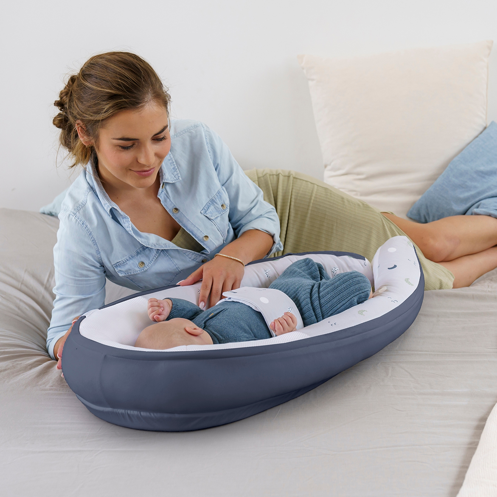 DOOMOO Cocoon Moon blau-grau – Das sichere Babynest für dein Baby