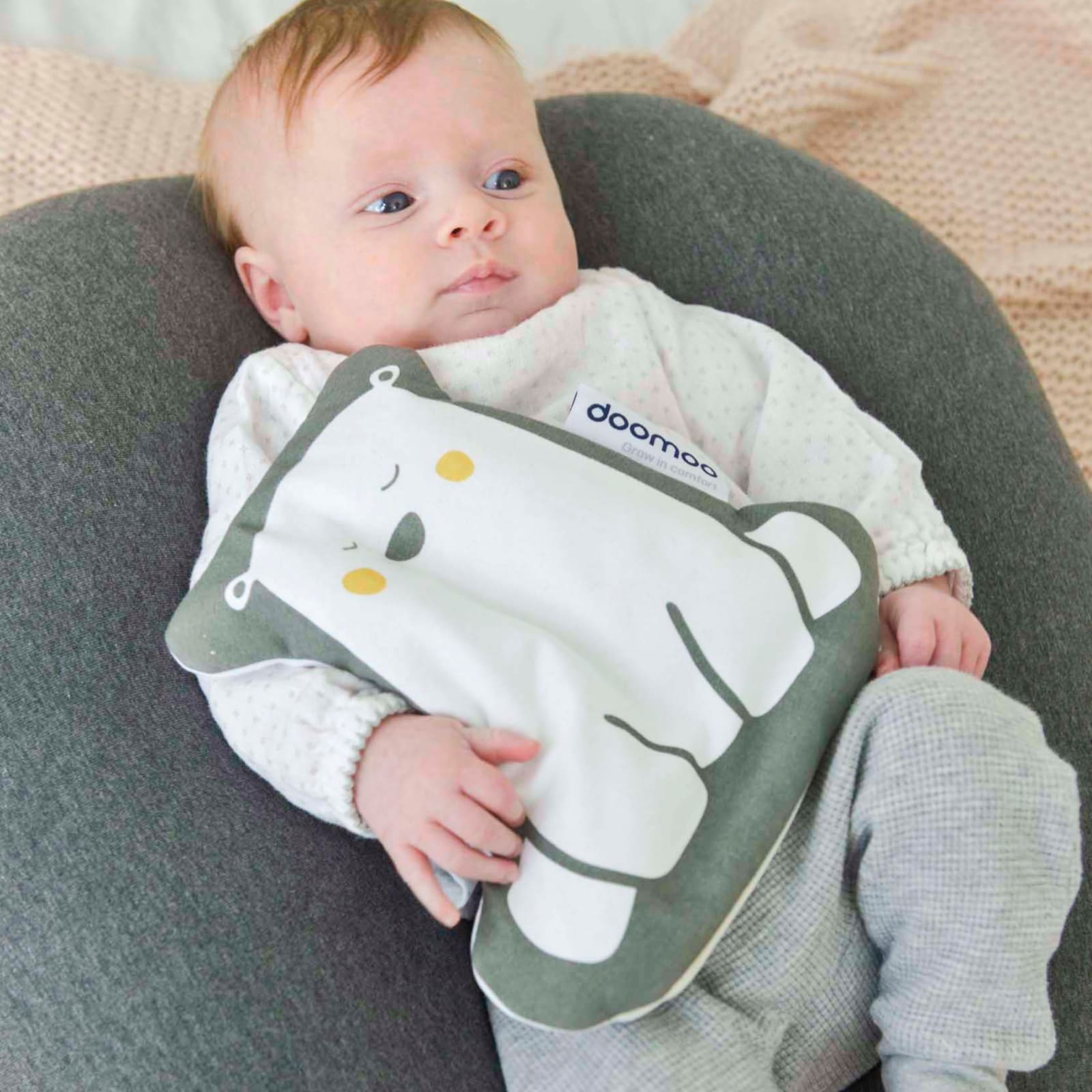 Die abgerundete Form schmiegt sich an die Taille der Erwachsenen und bietet so eine stabile Unterlage beim Halten des Babys. Das weiche Material schont die zarte Babyhaut und sorgt für ein kuscheliges Gefühl, das das Einschlafen und Entspannen fördert.