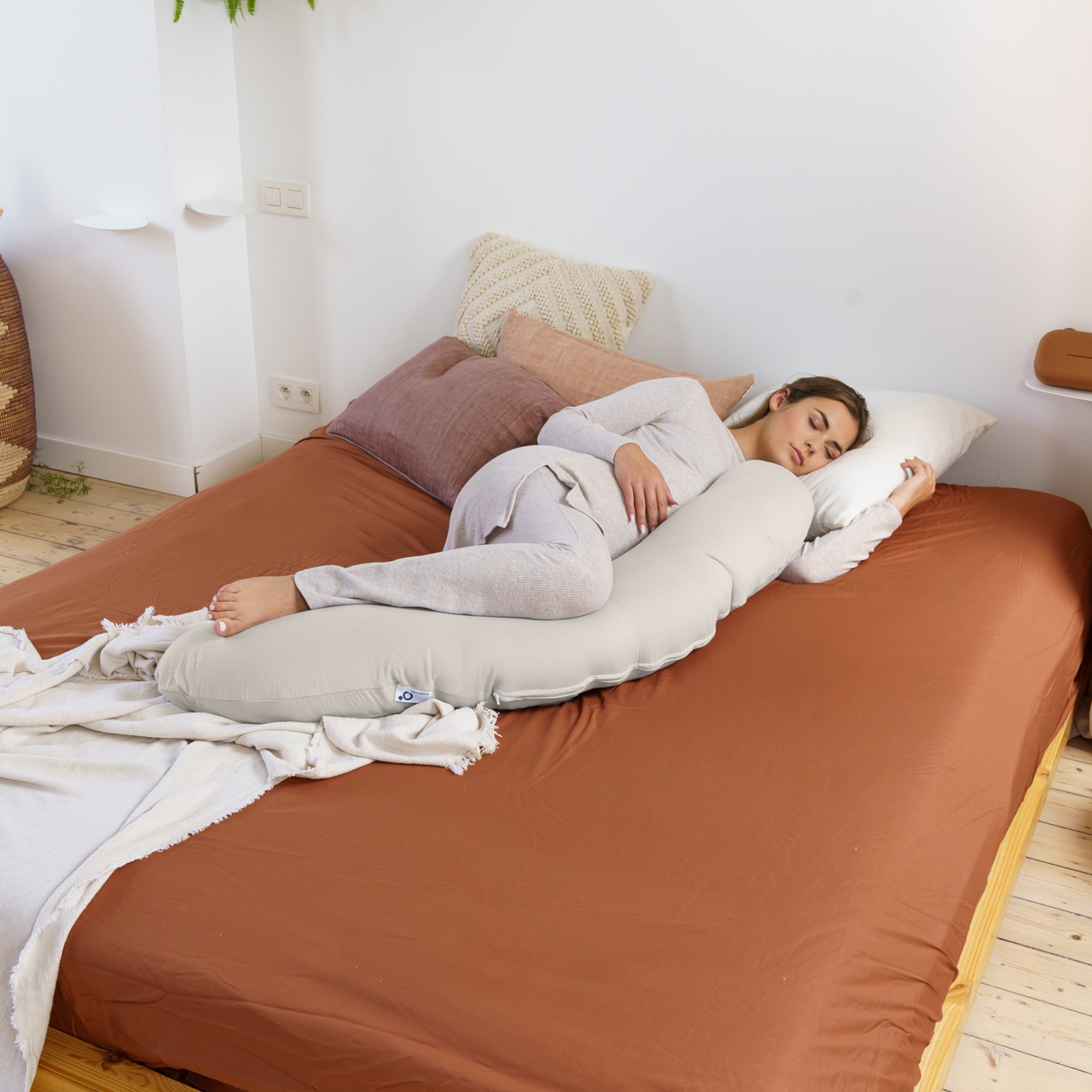 Ob beim Stillen, beim Schmusen mit dem Baby oder als komfortable Stütze während der Schwangerschaft — das Kissen passt sich deinen Bedürfnissen an und schafft entspannte Momente.