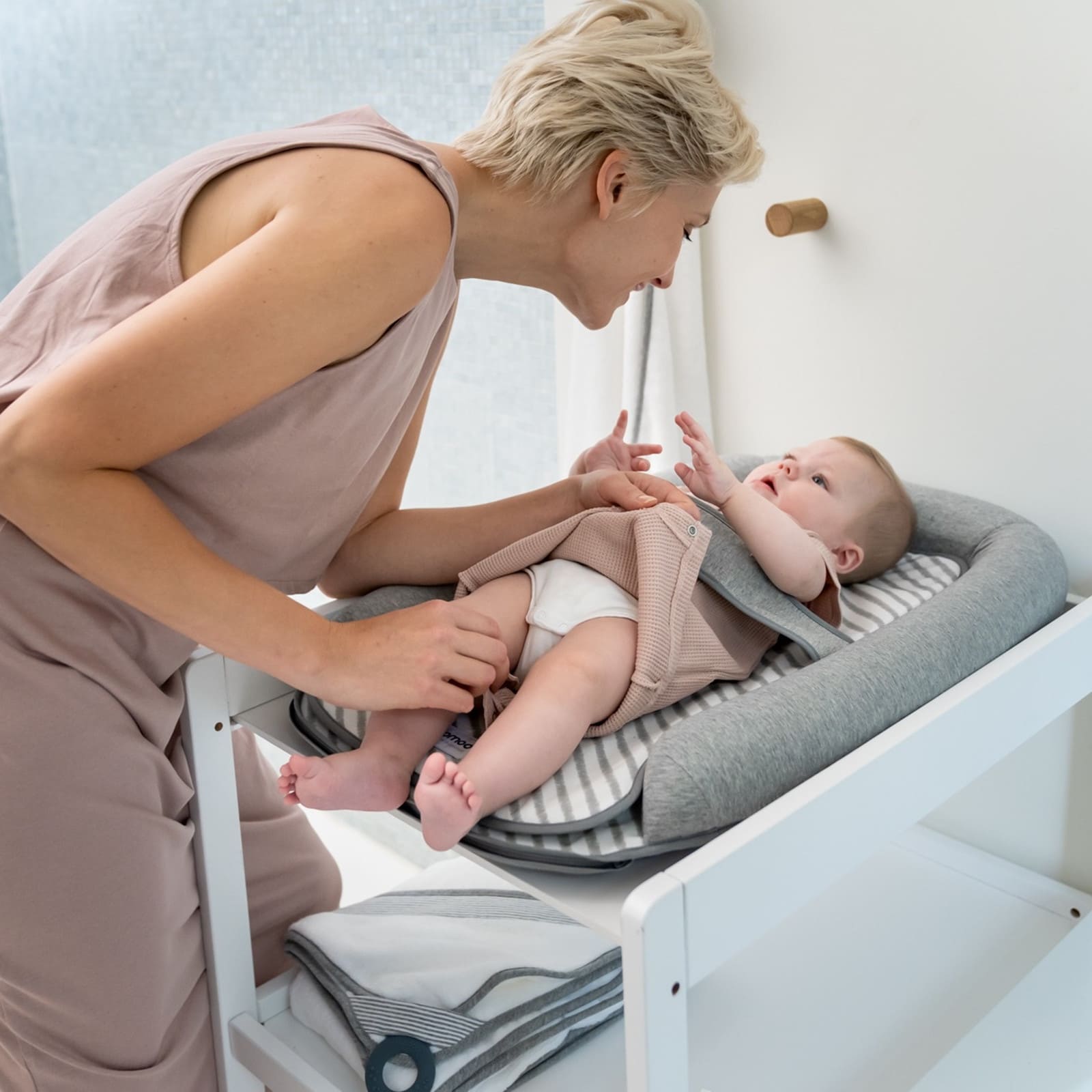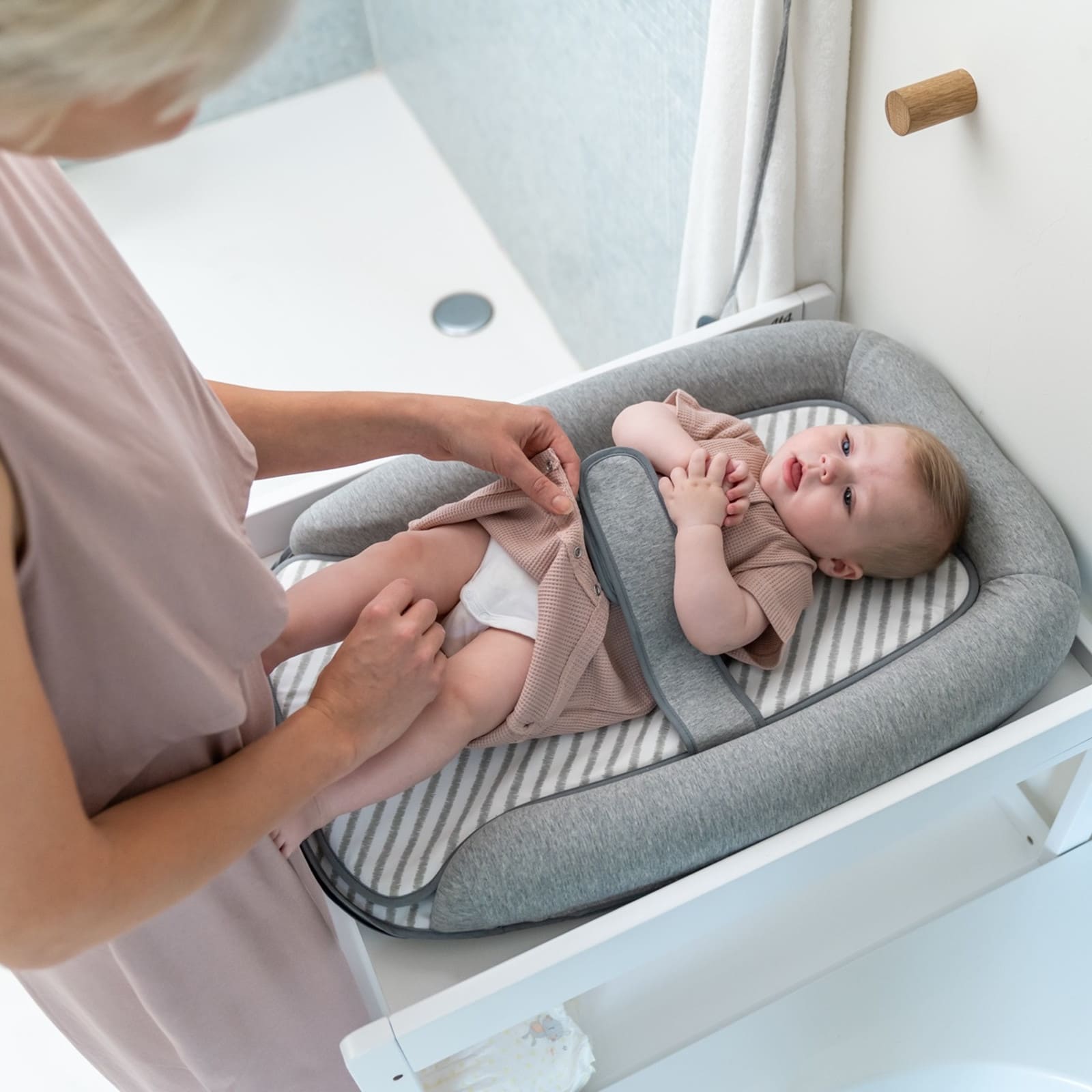 Cosy Care ist leicht zu handhaben, gut zu transportieren und eignet sich für zu Hause, unterwegs oder bei Besuchen. Das neutrale Grau fügt sich harmonisch in verschiedene Einrichtungsstile und Kinderzimmerkonzepte ein.