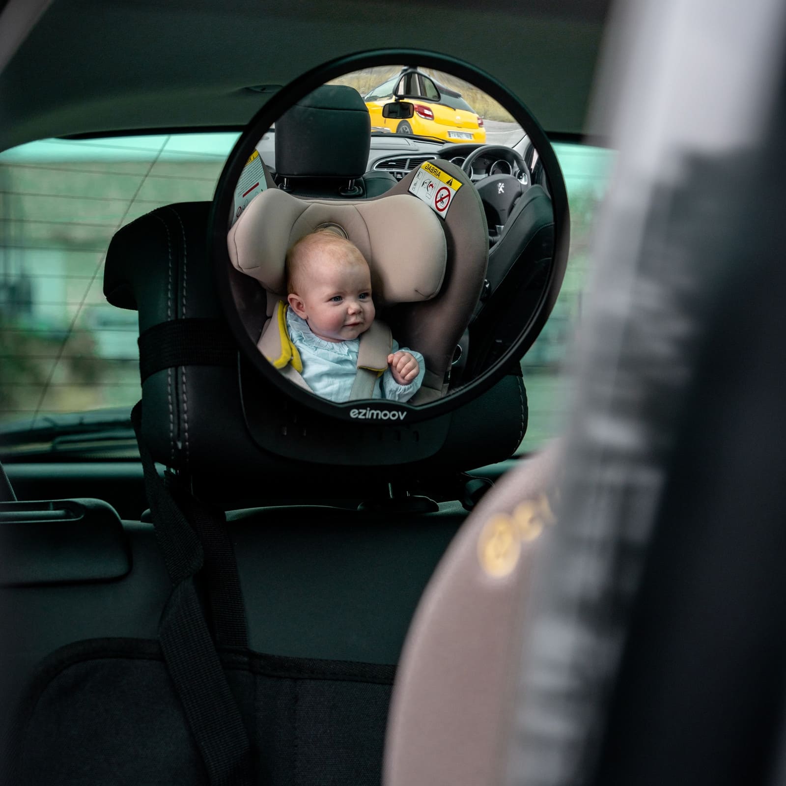 Der runde Spiegel ist ein grosser, leicht gewölbter Rundspiegel, der an der Kopfstütze des Rücksitzes befestigt wird. So hast du eine vollständige Sicht auf dein Kind, ohne dich umdrehen zu müssen, ein kurzer Blick in den Rückspiegel genügt. Das Wohlbefinden deines Kindes kannst du so jederzeit sicher vom Fahrersitz aus überwachen. Die Montage ist besonders einfach: Mit den verstellbaren Gurten lässt sich der Spiegel in wenigen Sekunden an jeder Kopfstütze und in jedem Fahrzeugtyp befestigen. Dank der um 360° drehbaren Halterung kannst du den idealen Blickwinkel einstellen und so auf jeder Fahrt beruhigt unterwegs sein. Der runde Spiegel besteht zu 82 % aus recyceltem Kunststoff. Robust und langlebig bietet er dir viele Jahre täglicher Nutzung.