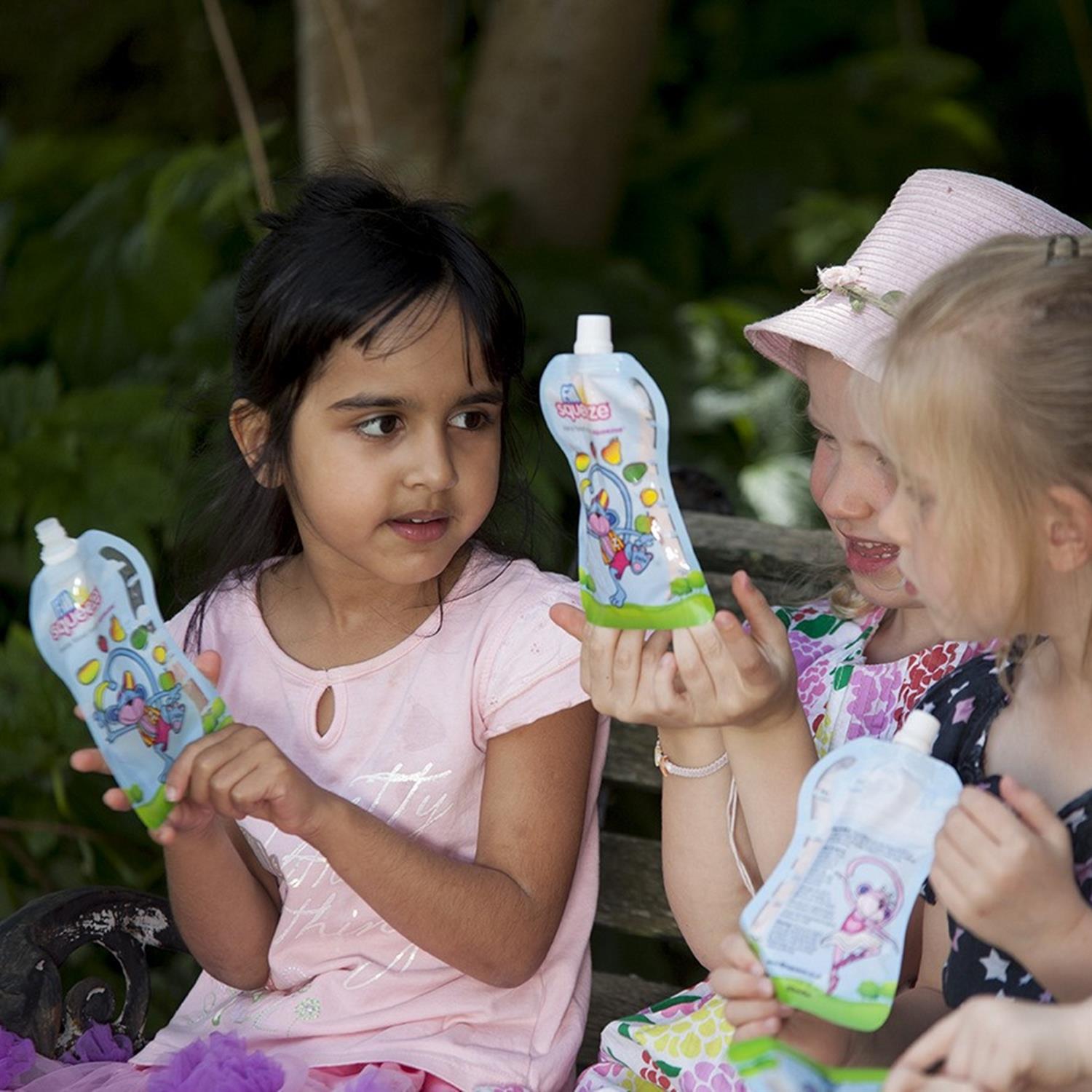 Die handlichen Beutel sind kindgerecht gestaltet und eignen sich gut, um den Übergang vom Fläschchen zur selbstständigen Mahlzeit zu unterstützen. Kinder können beim Öffnen und Schliessen mithelfen und so spielerisch Motorik und Selbstvertrauen entwickeln.