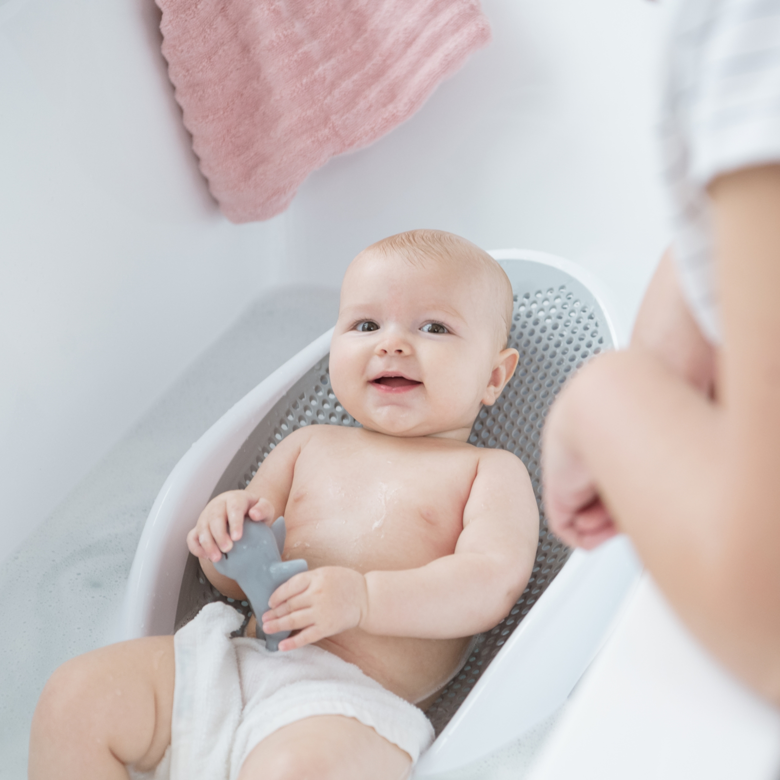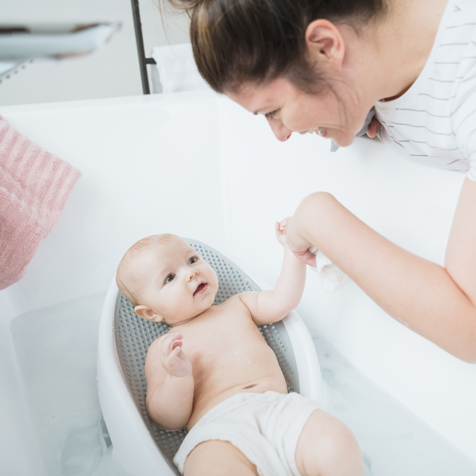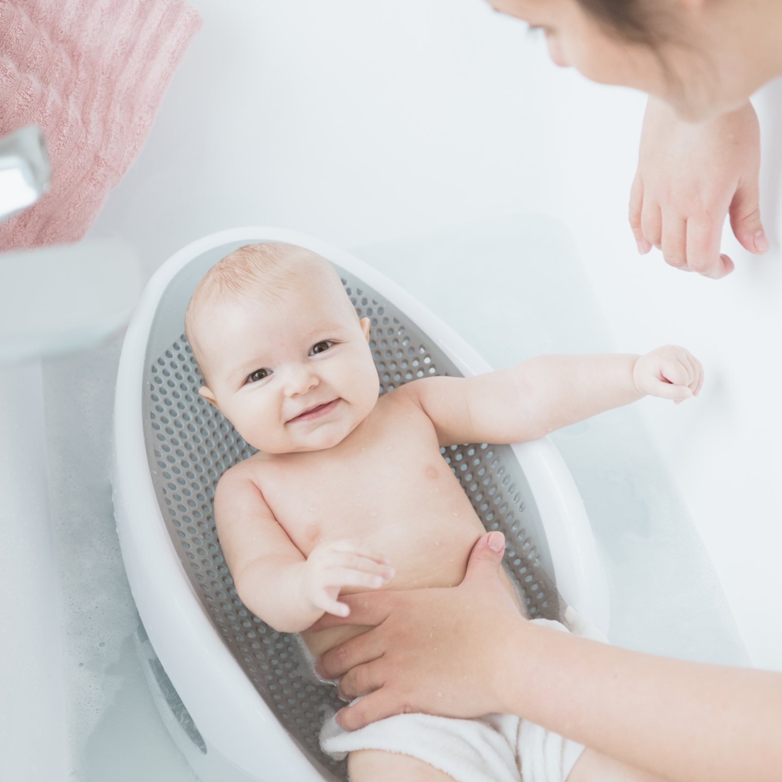 Le design intemporel s’intègre harmonieusement dans tous les environnements de salle de bain et fait du bain une expérience détendue pour les parents et l’enfant. L’aide de bain est conçue pour une utilisation dans les baignoires pour adultes classiques et facilite ainsi la manipulation lors du lavage de votre bébé.